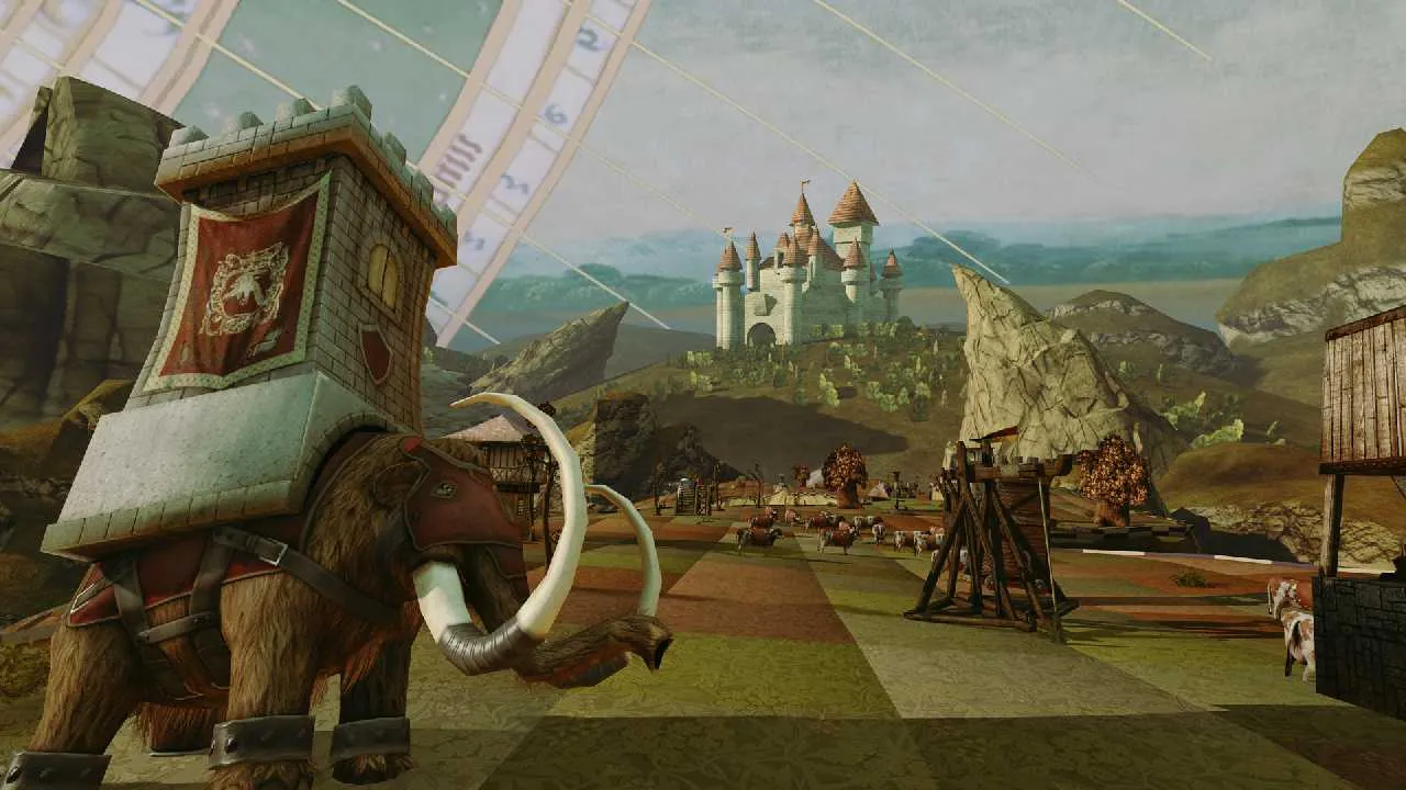 For better or worse, the strategy/building aspect of Rock of Ages doesn’t play into victory very much. Once your boulder is out on the field, you take direct control, rolling it past your opponent’s traps while attempting to maintain as much size as possible for smashing into the enemy’s gate. Buildings barely matter; the key to victory is simply getting your boulder to hit the opposing gate as soon as possible after spawning. Three boulder hits is all you will need to win in most situations, so success has more to do with ignoring obstacles and making a beeline for the gate. It’s still satisfying sending a giant rock hurling into your enemy, but I wish I could have explored these crazy locations and spent more time enjoying the natural fun of smashing things instead of feeling so rushed.