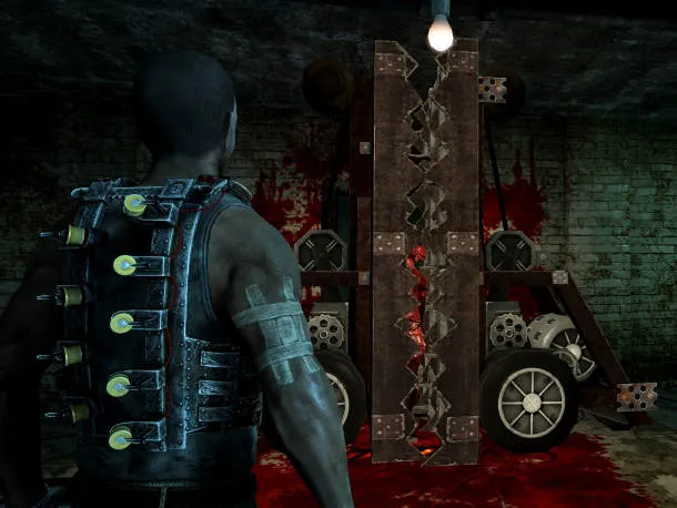 Saw II: Flesh & Blood saws off every limb the franchise was limping on. The first noticeably dismembered gameplay mechanic is the combat. While the original Saw game’s combat wasn’t good, it allowed players to set clever shotgun-door traps and trip wires for enemies. Now every combat situation is a terrible quick time event plagued by awful button prompts and horrendous animations. The only other combat situation involves playing matador with lunatics wearing spiked helmets, which results in countless sloppy deaths and snags in the environment.