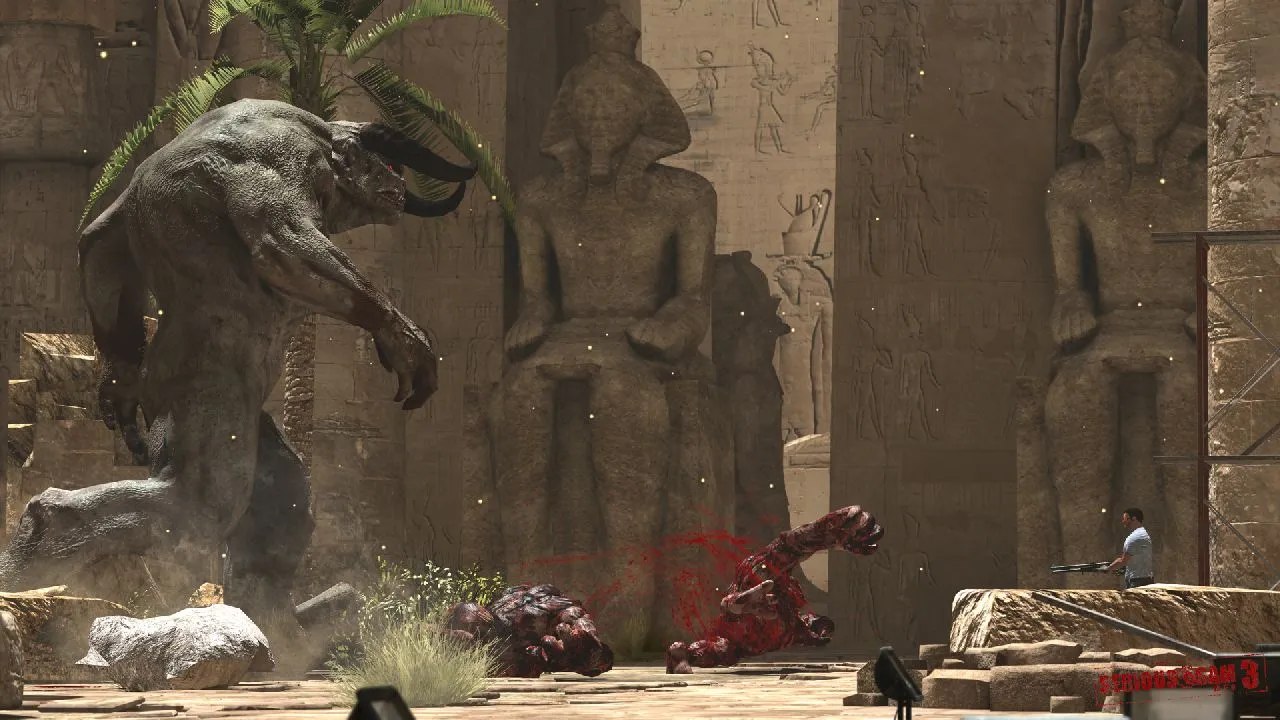 I circle-strafed the hell out of a whole lot of aliens in downtown Los Angeles just now. I think I chaingunned, shogunned, pistoled, and sledgehammered roughly three hundred bad guys in the course of a ten-minute hands-on demo of an Egypt-themed level of Serious Sam 3: BFE. The gameplay is so very Serious Sam that it would need a voiceover shouting the game’s title in your ear every four seconds to be any more obvious. The basic enemies have rocket launchers.