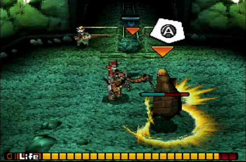 I wish I could heap such glowing praise on the gameplay. The action isn’t fundamentally bad or broken; it’s just shallow. Solatorobo’s combat system is built around picking stuff up and throwing it. That’s it. In most situations, the arena-style battles focus on maneuvering behind the bad guys, or catching and throwing back missiles they send your way. Occasional puzzles pop up, but they stretch the meaning of the word. Is it really puzzling to move a box to a glowing circle on the other side of the room?