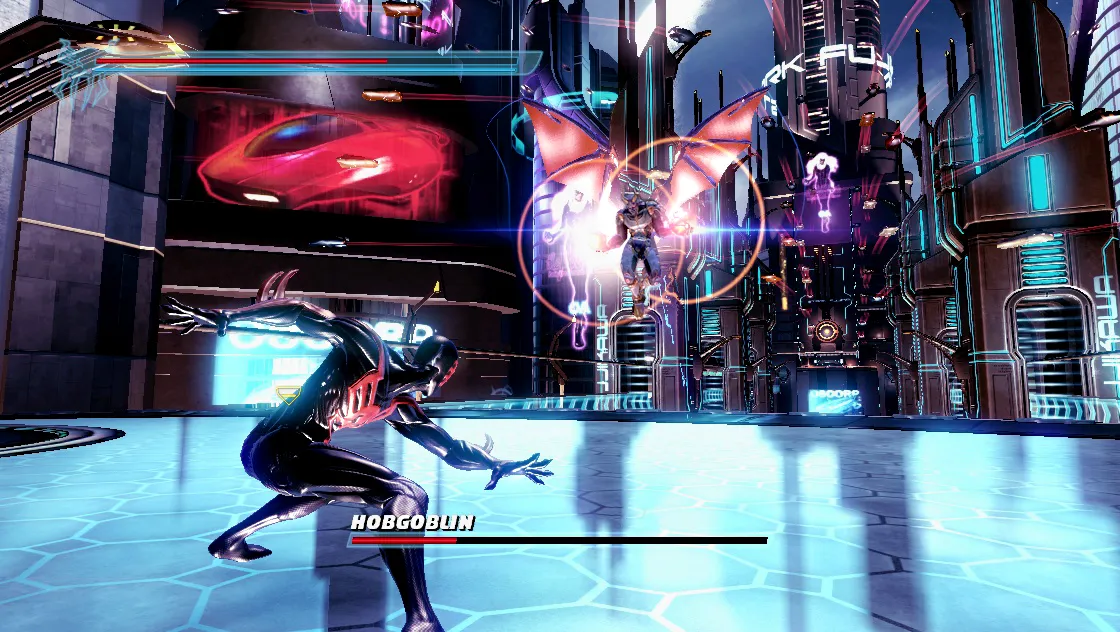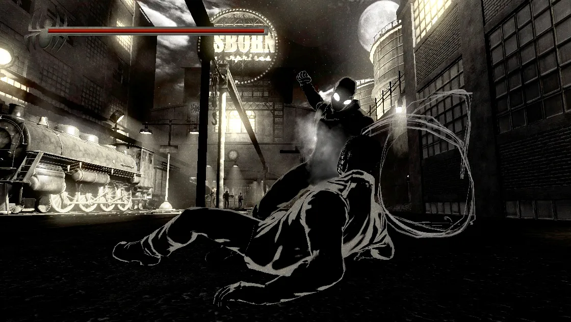 With this much going on it’s almost hard to pick a favorite world. Amazing’s gorgeous environments reminded me of Borderlands’ comic book vistas, and its web-based combat felt different than any of the other worlds. I also loved 2099’s neon-tipped environments and free-falling combat, which had me slamming super villains into any object that got in the way of gravity. The Ultimate universe puts Spidey in the black suit and gives him a rage meter, which makes the action against hordes of smaller minions all the more fierce. But I may have had the most fun in the Noir universe, where its stealth-based levels allowed me to sneak through cracks in the shadows and whittle away the enemy numbers with a series of punishing takedowns. The variety in this game extends to the unique boss battles, which usually involve using the environment to creatively take down your opponent instead of just chipping away at a large health bar.