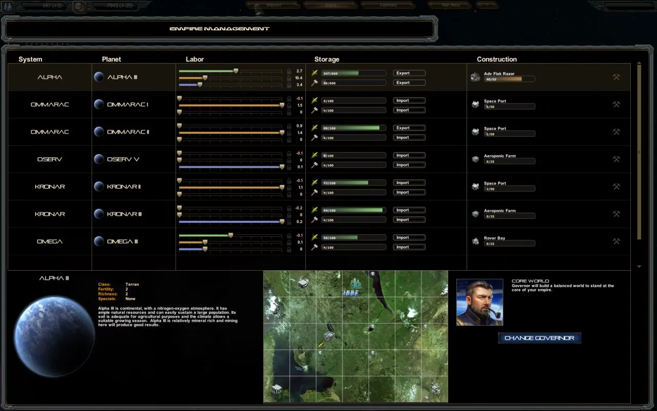 Experimentation leads to great moments of discovery, and I love the slowly unfolding of the galaxy that occurs in each game, charting planets, meeting species, and terraforming colonies. StarDrive lets you automate the more mundane aspects of management. Planetary governors can be established on some or all planets to make smart decisions about growth, and both trade and expansion can be set to continue largely without your involvement. This allows you to focus on research choices, interactions with alien species (including creating your own spy network), and the inevitable interstellar wars that follow.