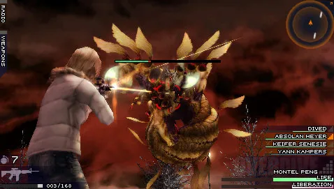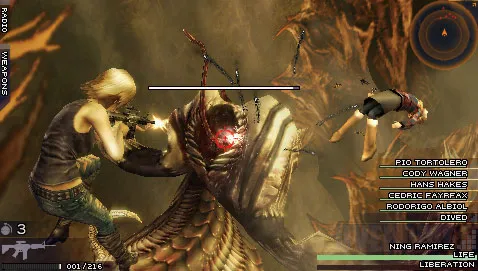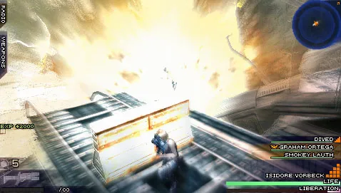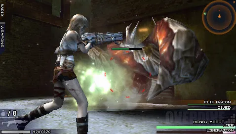 During the tutorial stage the player is introduced to a variety of Overdive abilities. These techniques allow Brea to quickly hop between the bodies of soldiers on the battlefield, assuming their position and weapons; jump inside weakened enemies for an Overdive Kill that causes them to implode; turn the aim of all allies toward a common enemy for a critical Crossfire attack; or go into a berserk state called Liberation that gives Brea incredible firepower and agility. Brea's impressive party tricks are all available from the beginning and would have been better served if they were unlocked over the course of the game. Though satisfying at the outset, the novelty quickly wears thin after executing these stagnant moves ad nauseum.