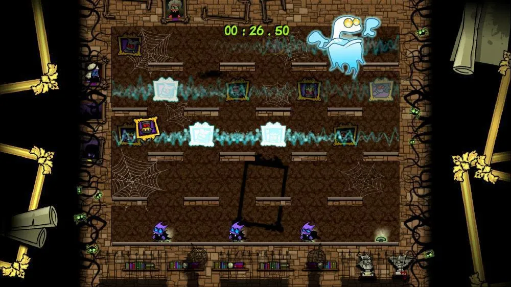 Each of the separate castle corridors contains a menacing boss with a unique battle mechanic. For instance, one forces you to create multiple clones of yourself to stand on switches to rob a possessed boiler boss of its steam power, while a later zombie scarecrow requires you to chase it down with a glowing cross, tricking it into a trap.