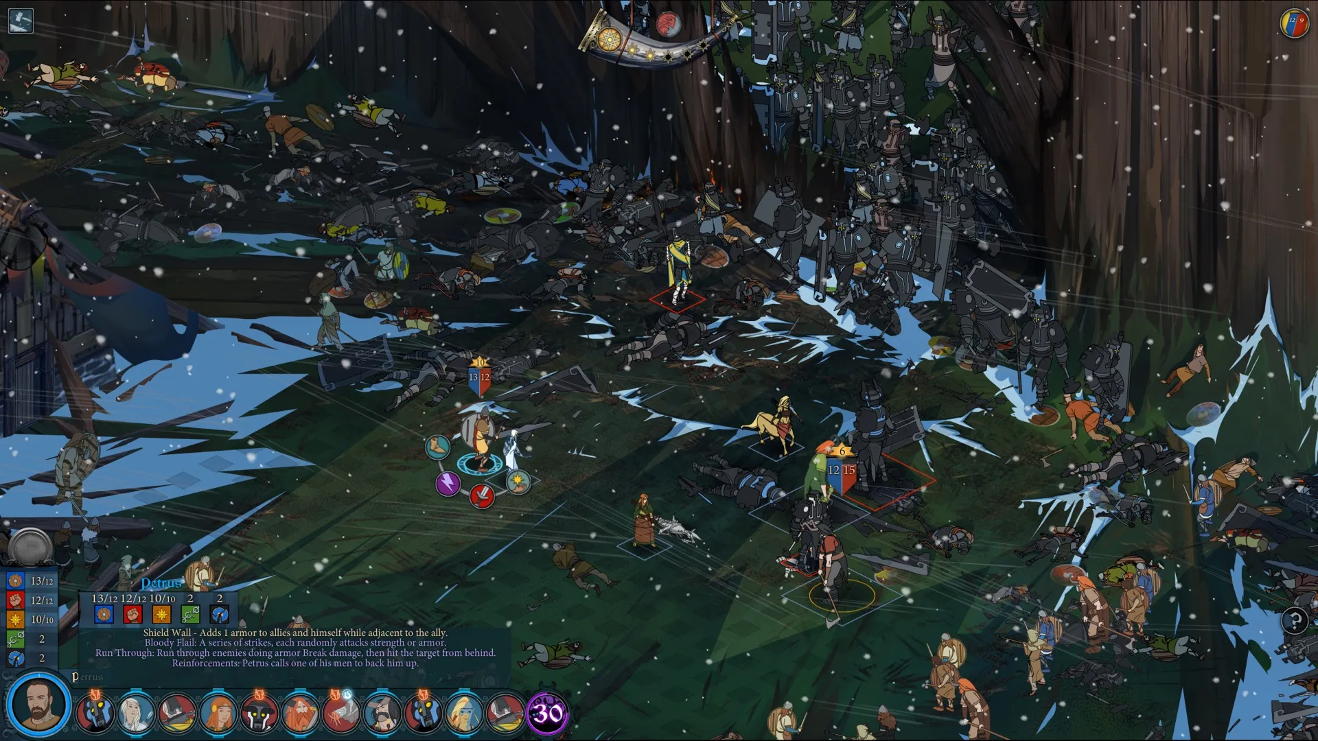 During these wave battles, the Valka spear that Ivan recieved at the end of Banner Saga 2 comes in handy. The spear fills with up to three charges players can use to unleash a chain lightning attack. Just like the willpower attack in previous games, but anyone in the party can use the spear attack.