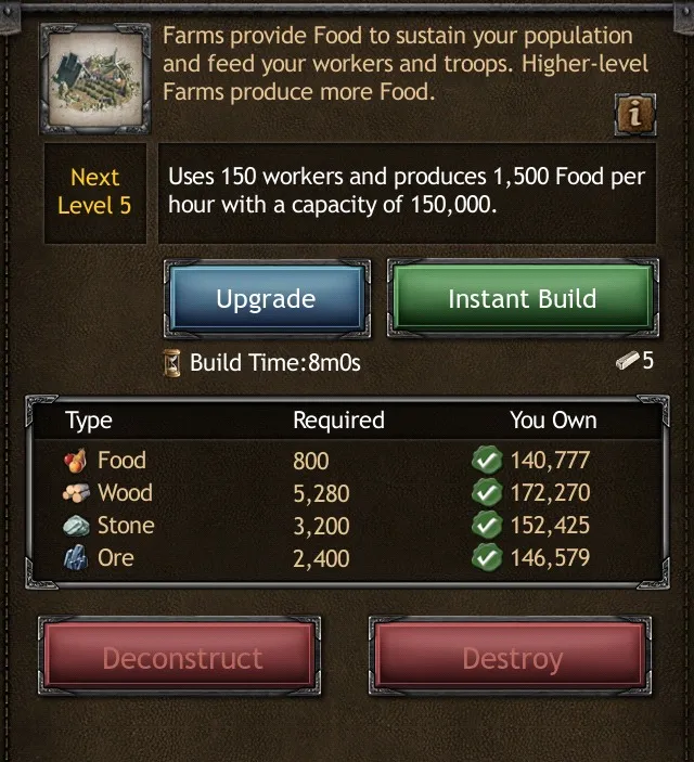 The game is mildly entertaining for about a week. During that time, it isn’t much different from a slew of other wait-for-construction games. You build up a city and its resources by enhancing your ability to harvest things like wood, ore, and food. You train troops for your army. You conduct research to improve your capabilities and work up to higher building tiers. At the early stages of play, none of these activities take very long, so it’s fun to check in on your city a few times a day and keep the ball rolling.