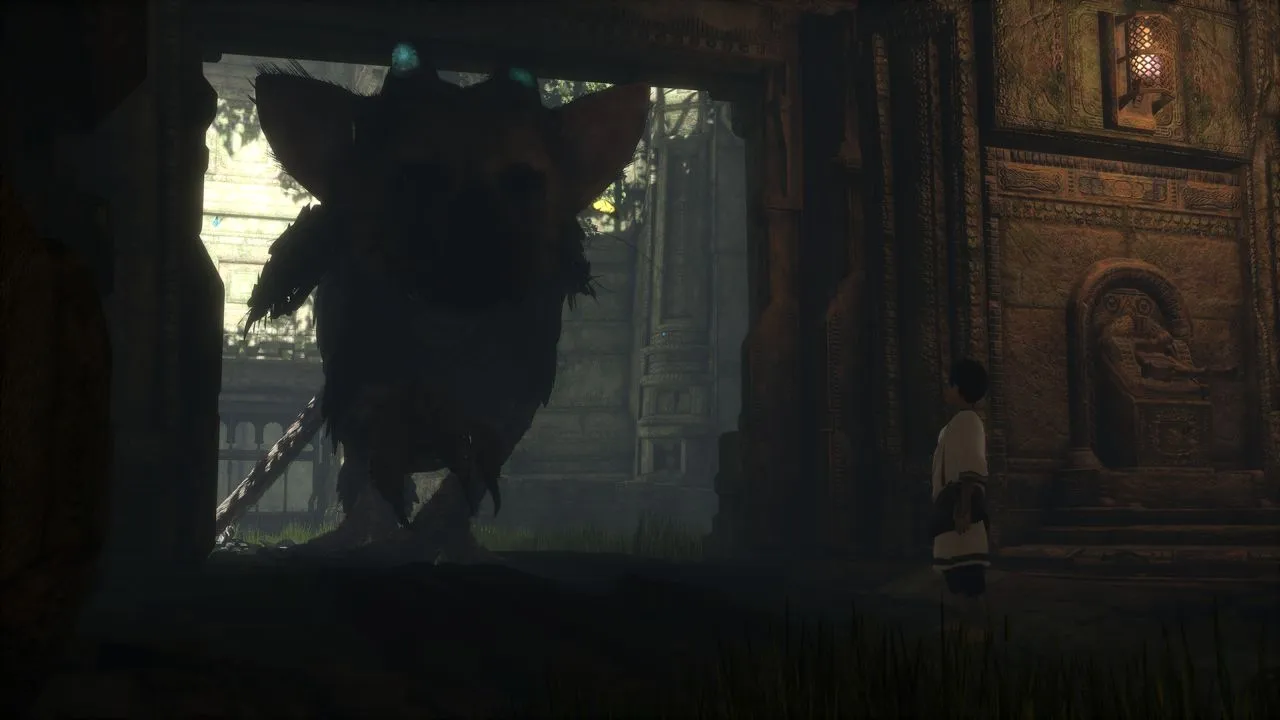 Whereas the relatively tight areas of the building helped accentuate the large size of the animal, the next area the pair move into dwarves them both. They walk out into the light and into the area covered in the Sony press conference (see the video below).