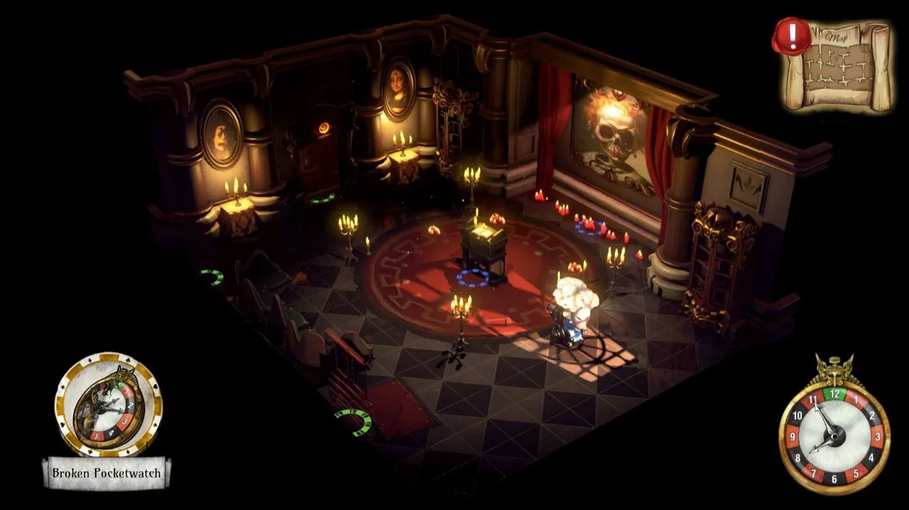 Preventing a character’s death usually involves a series of adventure-game antics, such as using a record player to lure a minion into a closet and then locking the door behind them. Thankfully, these puzzle solutions are rarely obtuse, and they often ask you to pull the strings from the shadows in some empowering ways. I prevented one murder by turning a rifle into a nonlethal weapon, while another puzzle had me reworking the power in the mansion in order to stop an escape artist’s stage show before it was his final curtain call.