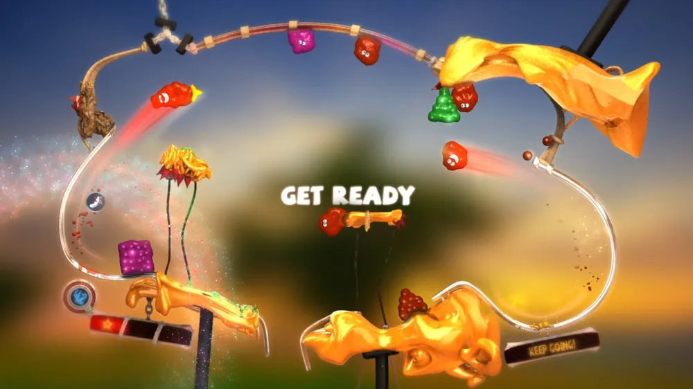 Much of the experimental nature comes from the option to reverse trajectory, which is unlimited. The only disadvantage to using it repeatedly is that your combo timer (which is unaffected) continues running down, causing your score to take a hit. You have a limited number of goo blobs to throw at the bombs, but you can keep them in the air building momentum for as long as you want.