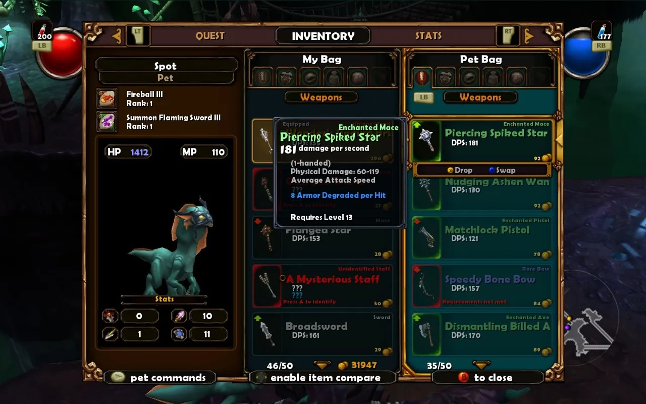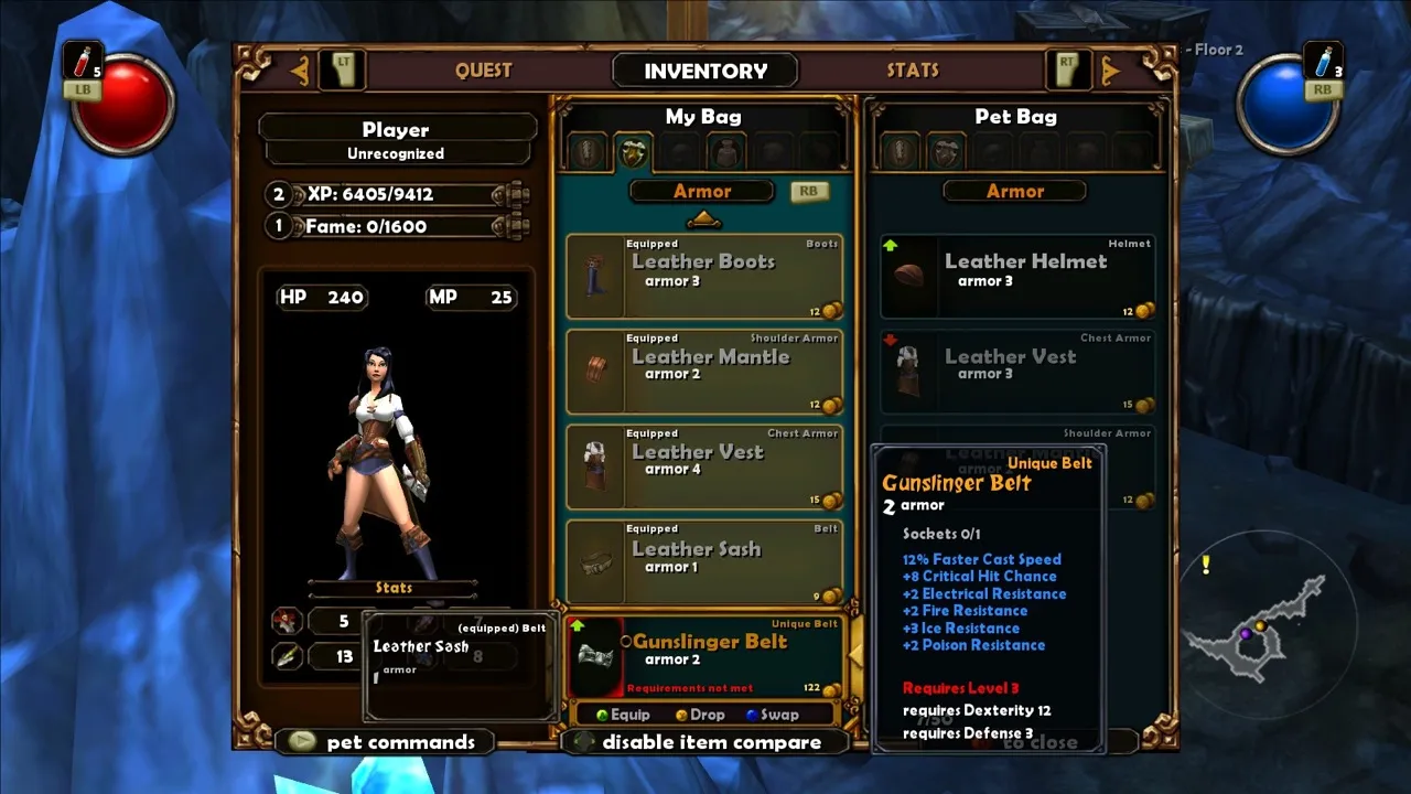 Where Diablo II is a sprawling epic with dozens of viable character builds and advanced tactics that push the interface to its limit, Torchlight is more light-hearted and demands less of its players. I don't say this as a bad thing; Torchlight's brand of explosive dungeon crawling is a different vibe that scratches a slightly different itch. This cuddlier nature is the very thing that allows Torchlight to thrive on consoles.