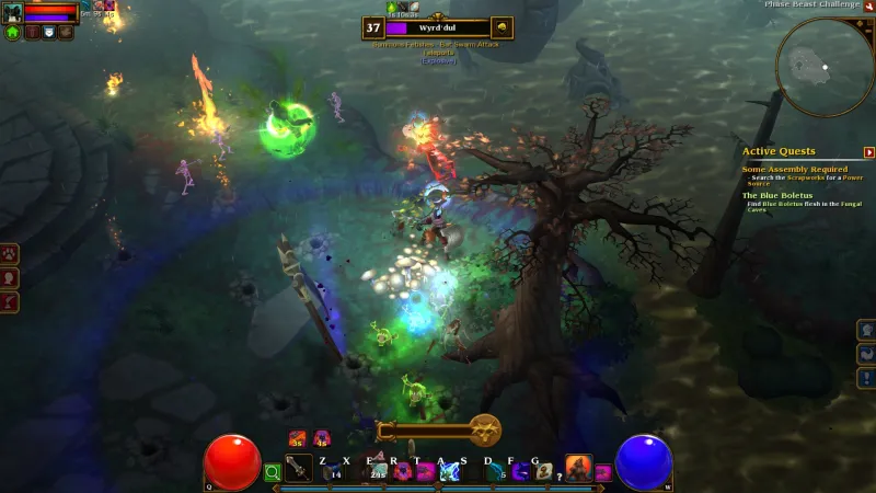 No matter where you are or what skill and equipment loadout you build, Torchlight II is never boring. Monsters constantly throw new challenges at you: beasts generate clones by eating corpses, steam-powered automatons spawn lightning-spewing gyrocopters, and mushroom mages create mana-draining void zones. The boss fights are similarly creative, many of which smartly push players out of their comfort zone by punishing or demanding certain strategies or engagement distances. A steady drip of new skill unlocks continually puts new tools in your belt, often enabling entirely new tactics. I flipped my approach to combat on its head more than once in my berserker playthrough, morphing wholesale from a dual-wielding melee machine to a sword-and-board battlemage midway through the third act.