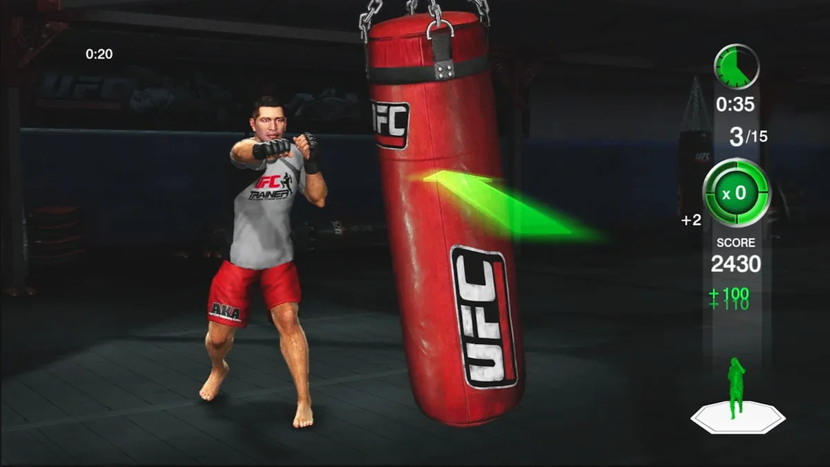 Games like Dance Central provide a good example of how games can track a player’s body movements while showing players how to improve their form, but UFC Personal Trainer’s biggest flaw is its halfhearted implementation of motion tracking. UFC doesn’t measure your body posture or judge you on the accuracy of the punches you throw. In fact, the advice given by your trainer is often so vague you don’t know if your stance is accurate or if you’re leaving yourself exposed while throwing an elbow. Floor tracking is even worse; at least a third of my push-ups and sit-ups never registered with the game. In short, very little differentiates these in-game workouts from a DVD fitness video. In fact, these routines are often less intense than many of today’s popular fitness programs, such as P90X.