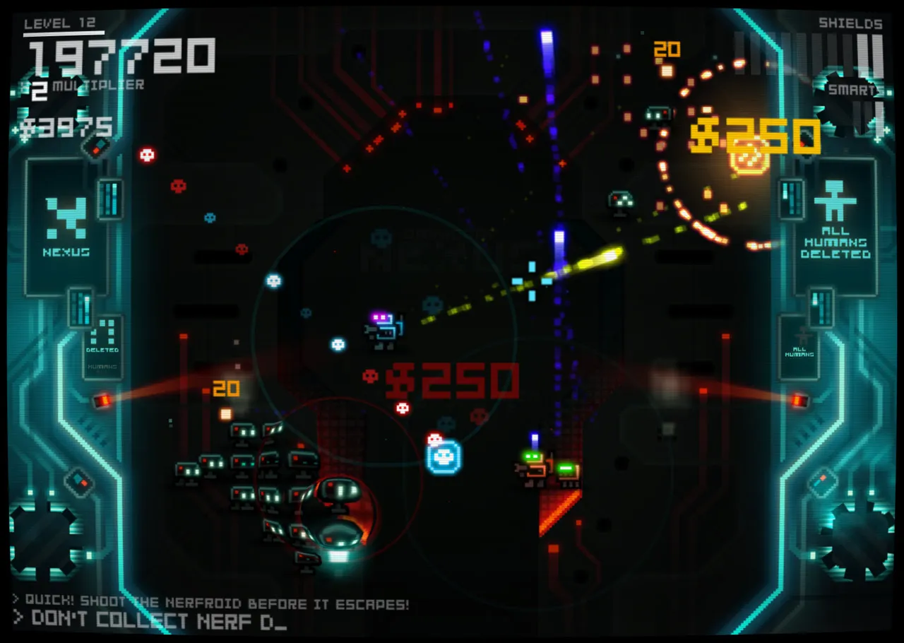 Ultratron is set in a dystopian future where robots have eradicated all human life. Players will control a humanoid battledroid as they set out to avenge humanity. The shooter evokes classic arcade games of days past like Robotron. Matches play out in colorful arenas as players gun down evil robots, grabbing upgrades and cash along the way.