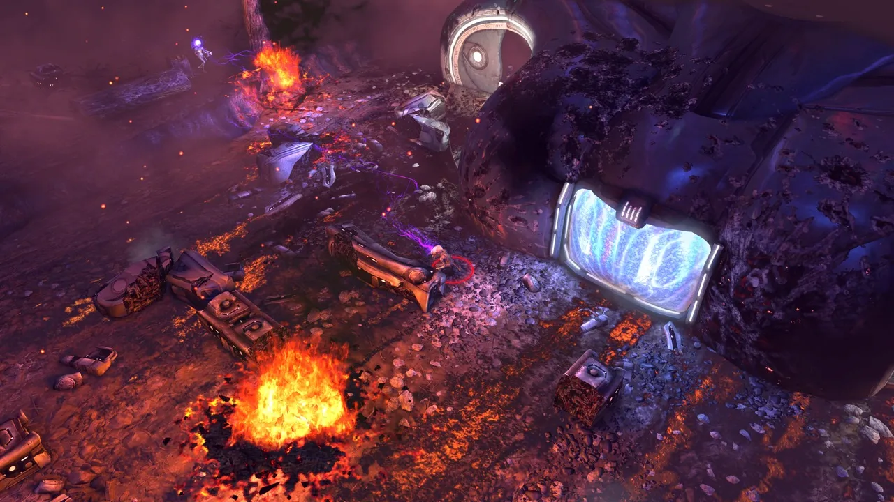 Thankfully, only a fraction of the UFO’s crew survived the crash. The dispatched soldiers gingerly pick their way past burning trees and flickering energy fields only to have a new alien type – the energy-based outsider – nearly one-shot Corporal Reeves with a previously unknown plasma weapon.