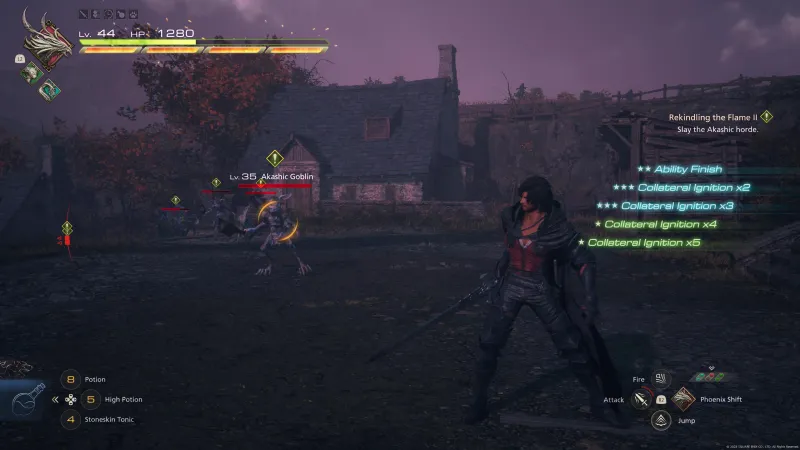 This is the most important tip I can give you, considering the majority of your time in FFXVI will be spent wailing on enemies. And though it’s obvious – like yes, duh, extend your combos in an action game – what’s not apparent are the simple ways you can do that. First, unlock everything you can in Clive’s starting ability circle. This unlocks moves like down thrust, lunge, an ability to jump off enemies, and more. These moves work together to extend your combos greatly.