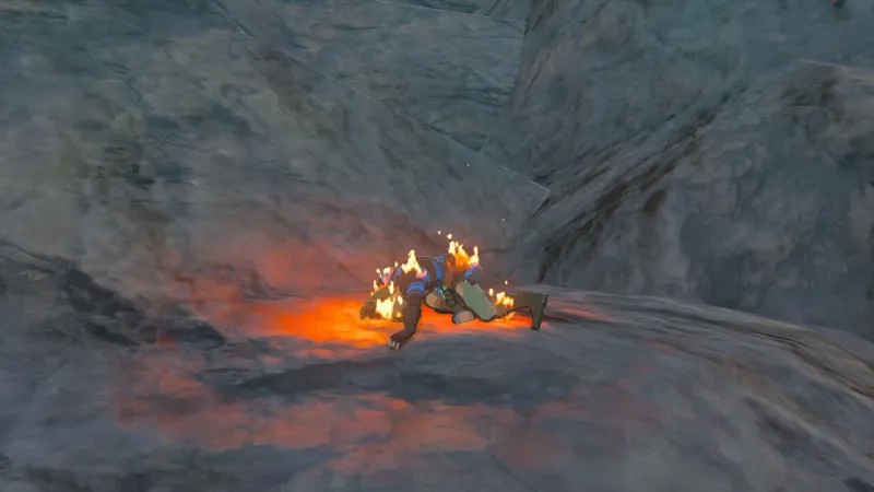Sometimes you are on the side of a mountain and you accidentally shoot a bomb arrow in the wall two feet from your face, fall to your death, and then snap a screenshot right after the moment where the UI disappears, but before the Game Over screen appears. I think the flames licking Link's dead body would look great in translucent red plastic.