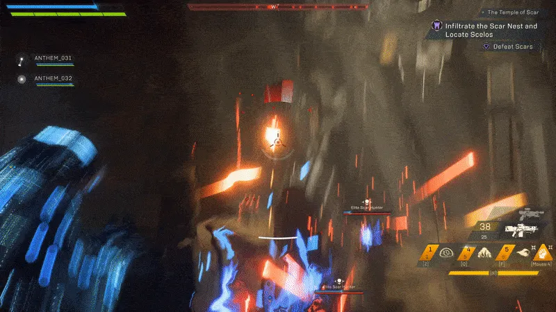 The Temple of Scar, however, was a much more satisfying stronghold than The Tyrant Mine. The Temple of Scar’s arenas felt more intricate than anything I'd played of Anthem. The encounters took place in large, vertical areas with imposing towers, nooks, and hallways intermingling, which meant I was able to consistently use flight to prioritize targets mid-combat rather than as a way to simply travel from fight to fight.