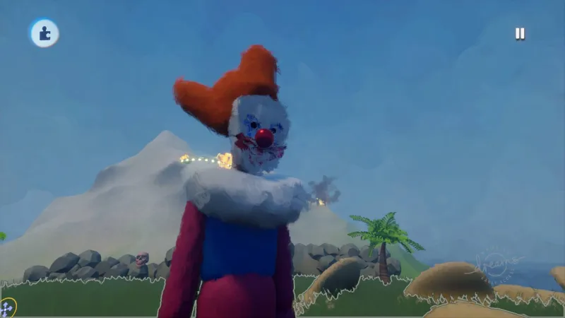 However, things began to fall apart shortly after that. I rigged a boat I planted earlier with a possession record tool and zoomed it across the speed. In theory: stapling a trigger to the boat and connecting it to that animation recording should make it carry the player across the sea to the edge of the screen (and away from our nefarious clown). However, in practice what happened is that trigger switches fell through the boat because the boat isn't actually a physical object.
