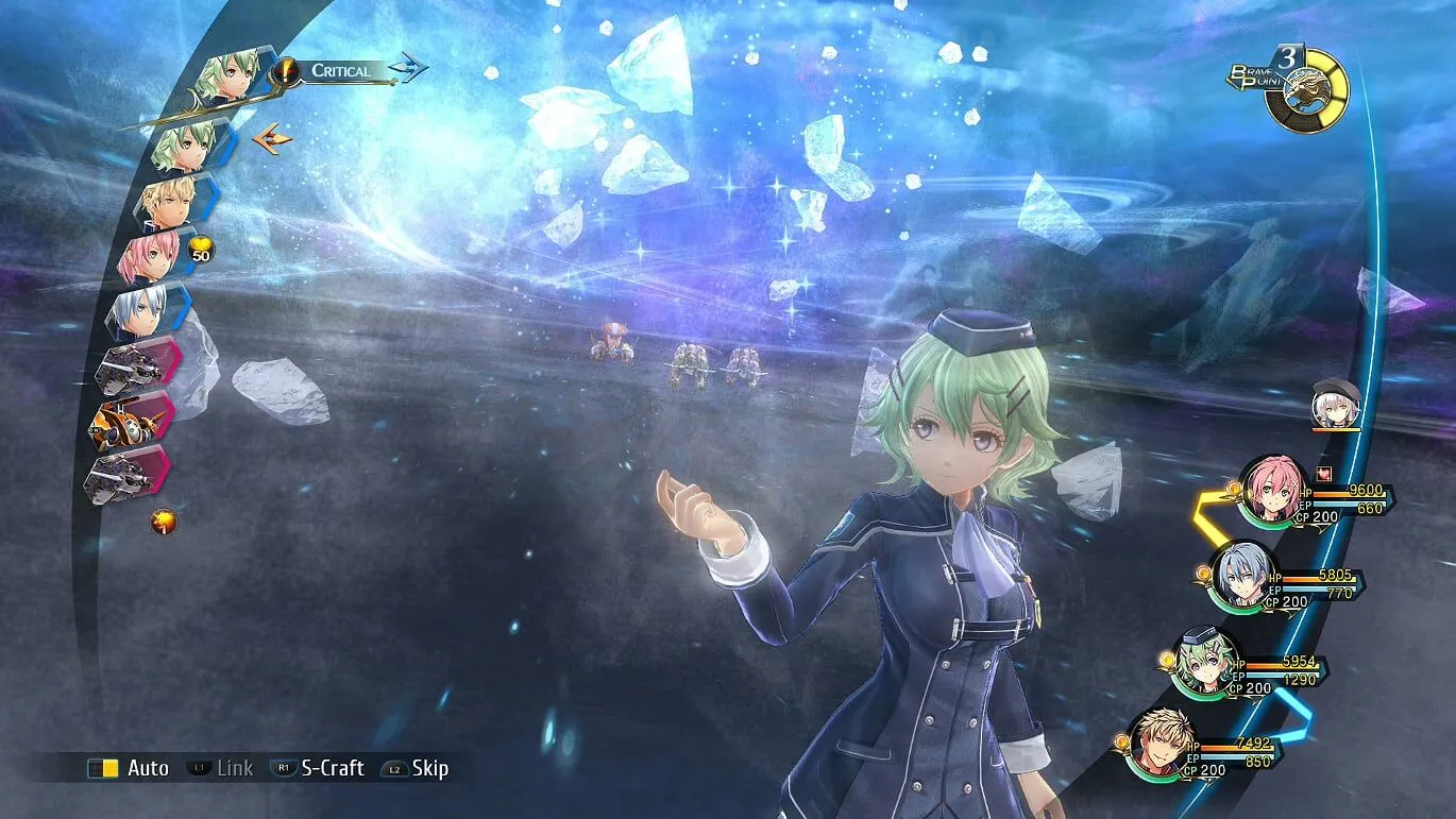 Remember that familiar-but-slightly-different feel I was talking about earlier for Cold Steel III? That extends to combat, which remains turn-based and still centers on positioning, linking teammates for improved tactics, and using their special attacks and magic spells judiciously. Trails of Cold Steel III's gameplay expands on the series' already-complex battle mechanics with a break system (straight out of the Ys series) to weaken enemy defenses and Juna being able to change her battle style. Juna’s gunner position is great for ranged attacks and hitting groups of enemies, but if you swap her to the striker, it increases her speed, defense, and attack power on close-ranged foes, best used on one target.
