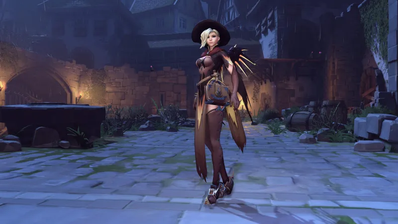 No character dons the Halloween attire better than Mercy does as the Witch of the Wilds. Her staff - which is cleverly transformed into a broomstick with the skin - already brings the power to heal, boost powers, and fly, so it's not a stretch to think she got this magic from somewhere and there's some witchcraft involved. Offering the objects of people's desires "for a price," Witch Mercy plays her role well. With her spellbook and black hat, she certainly looks the part, but we're also happy Blizzard didn't just follow the generic witch look by putting her in all black or making her skin green; instead, Mercy was allowed to have her own style. Also, those witch boots!