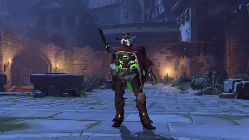 With his pistol skills, it's hard to think many people could get the jump on McCree, but in this case even if they did, he'd just rise from the dead. The skeleton bandana and DAMF belt are a nice touch.