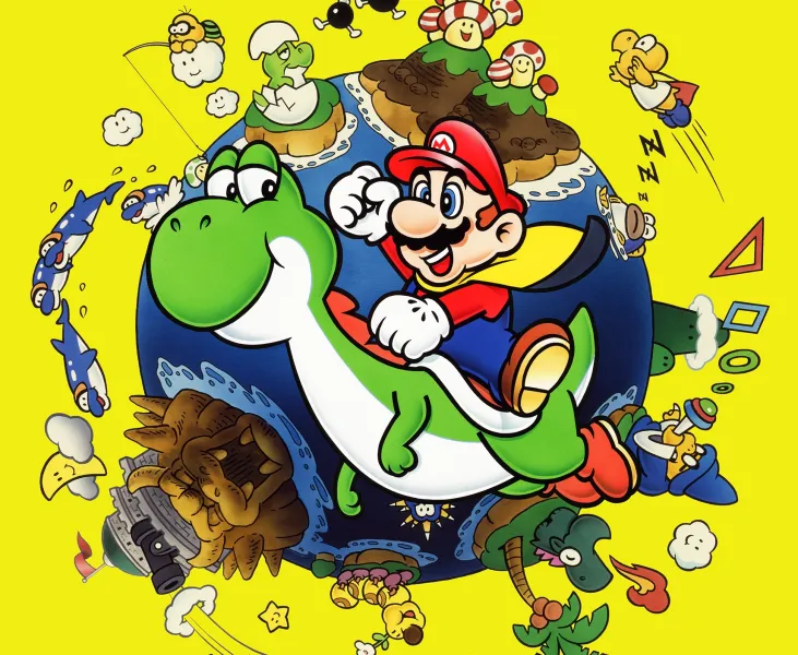 As the team began looking at what directions to take the series following the success of Super Mario World, they decided to capitalize on the popularity of the new character Yoshi. Yoshi had become such a beloved inclusion in the Super Mario series that he would receive his own spin-off series, which Nintendo experimented with in its follow-up to Super Mario World. With 1995’s Super Mario World 2: Yoshi’s Island, the series’ formula was drastically shaken up once more. No longer was Mario the main protagonist. Instead, players controlled Yoshi as he watched over a baby version of Mario in an effort to rescue Baby Luigi from Baby Bowser.