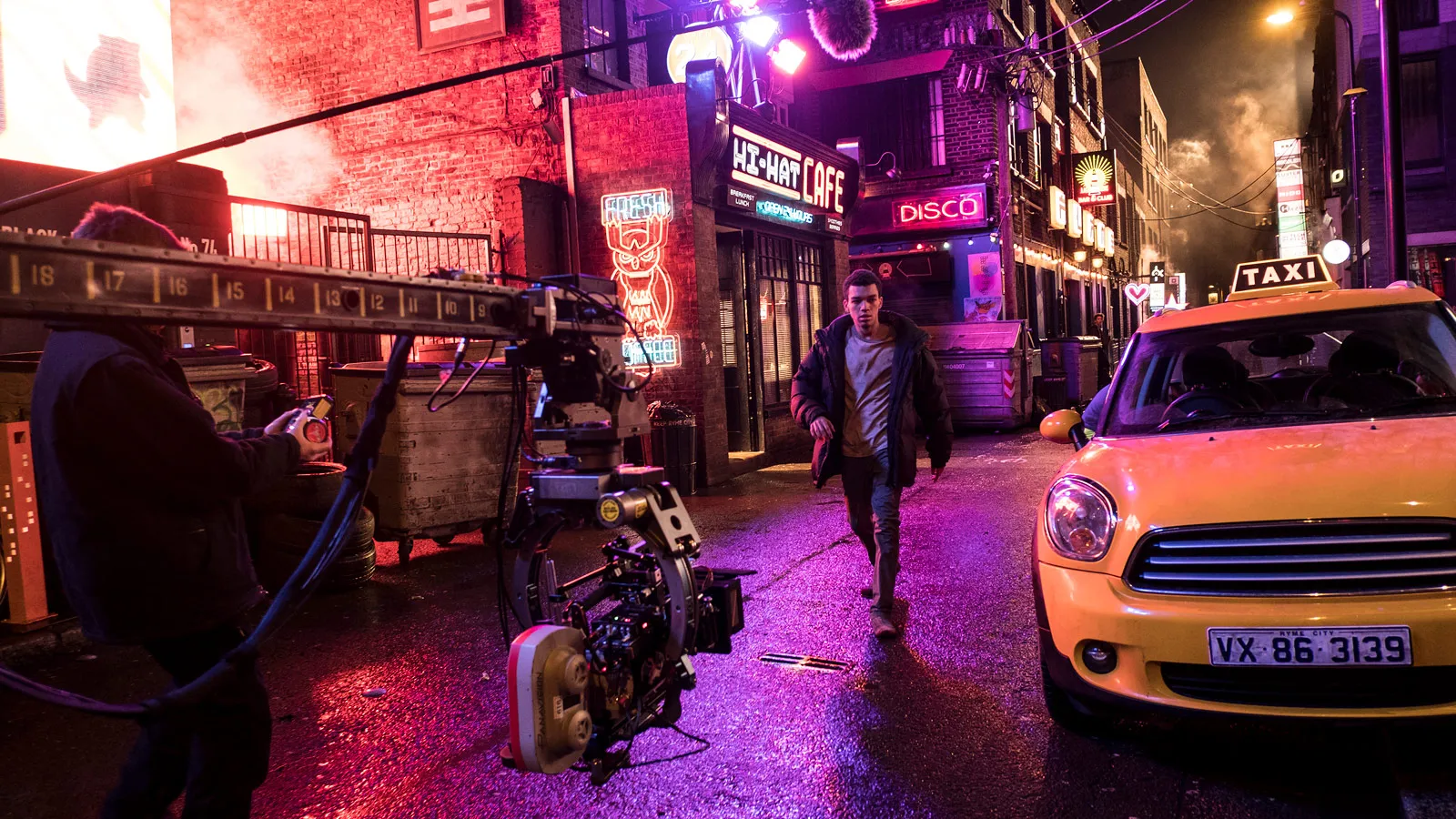 In April of 2018, before any trailers or leaked art assets from the Pokémon Detective Pikachu set made their way to the internet, we flew to London to visit the film on a normal day of shooting. The movie had been announced and the cast had been revealed, including Ryan Reynolds’ role as the titular Detective Pikachu, but nothing else was known about the film. Walking toward the set I passed signs on assorted vehicles and doors with the word ‘Gumshoe’ written in the familiar Pokémon font. Gumshoe was the production codename for the film, but the font betrayed any secrecy the name was trying to instill. The day I visited the set, they were on day 61 of Detective Pikachu’s planned 75-day shoot.