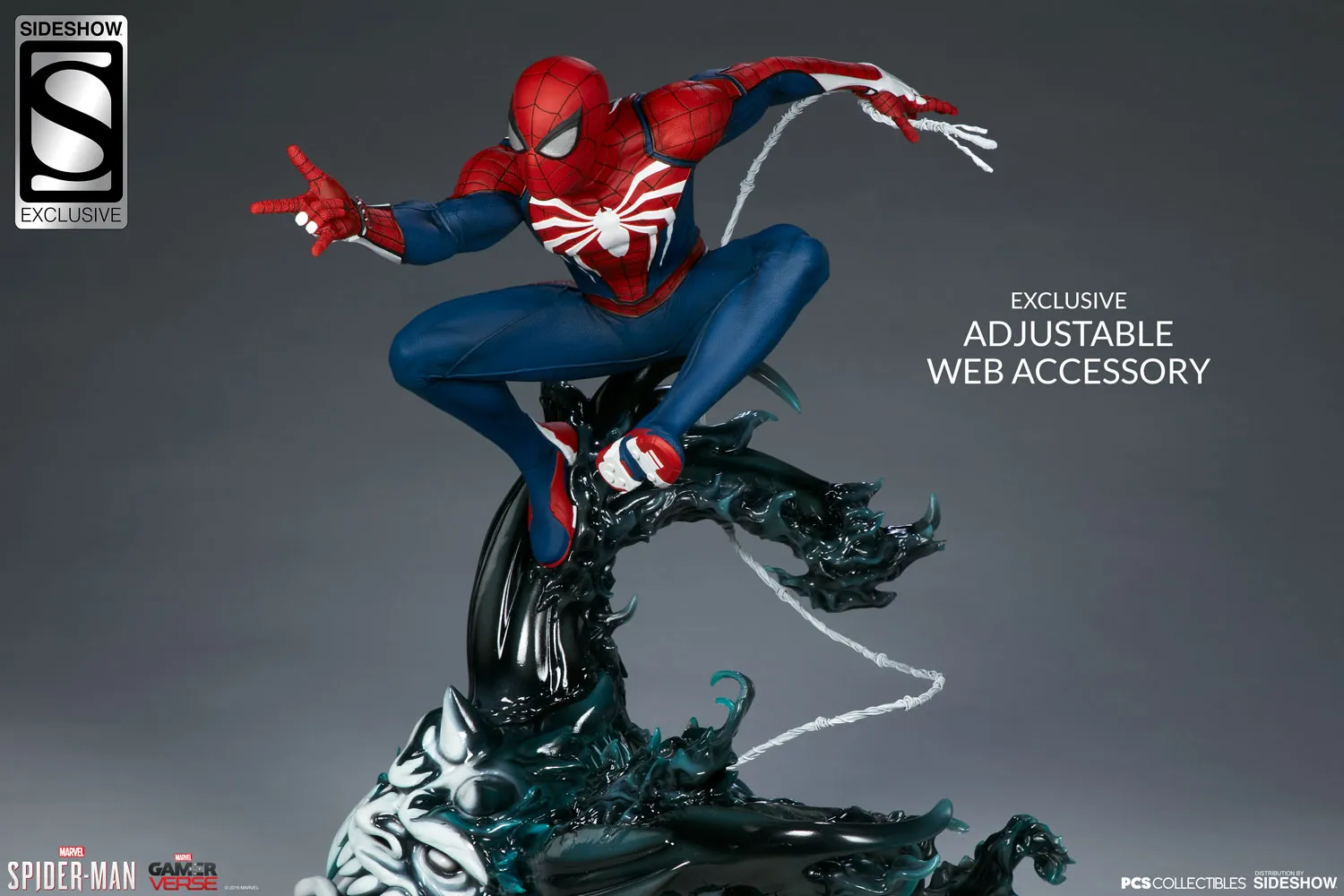 Sideshow and PCS Collectibles have created the ultimate item for fans of the game. Standing in at 24-inches in height, the Spider-Man Advanced Suit statue can be yours for just $1,100. Sideshow is creating two different versions: an "exclusive" one that comes with a flexible web, and the "standard" edition that doesn't have it.