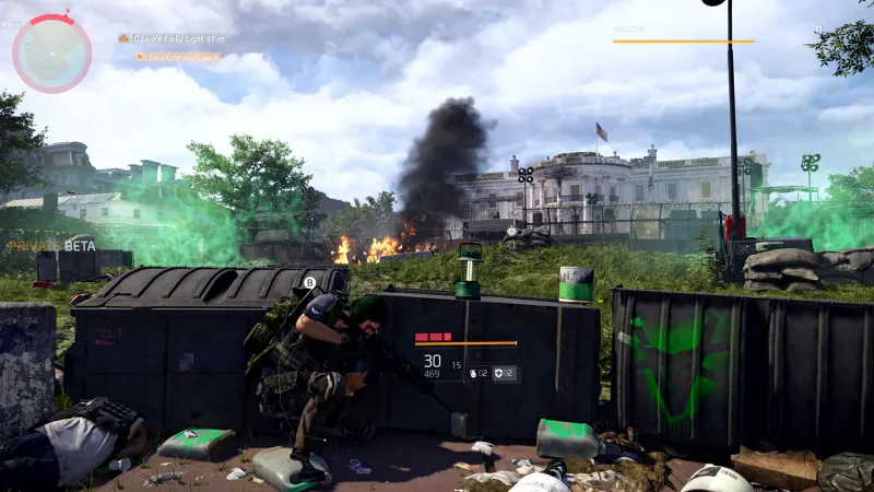 Seven months may not seem like a huge leap, but the difference in how things are in the first Division and its sequel are stark. Nature is working to reclaim D.C., with plants overtaking street signs and roads cracked and heaving in places. The NPCs you encounter have their acts together in ways The Division’s New Yorkers didn’t. During my time in the streets, I didn’t encounter anyone wandering around looking for a bottle of water. Instead, I saw small groups of survivors working together to forage their own supplies. “The civilians that are still there are fighters,” Gerighty says. “They’re out in the streets trying to survive. They’re looking for the resources that they need, so they’re not the helpless civilians that you saw in the first game. That’s super important to me.”