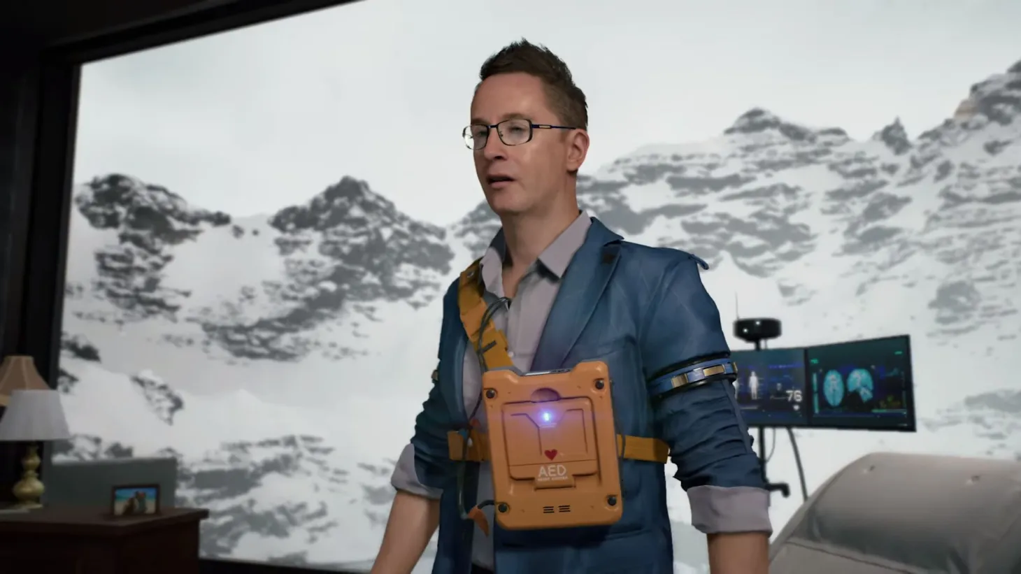 In the latest trailer for Death Stranding, we learn a bit more about Heartman, who must live his live in 21-minute cycles due to an issue with his heart that essentially kills him and lets him cross over to another world and search for his family for three minutes before being resuscitated by defibrillator strapped to his chest.