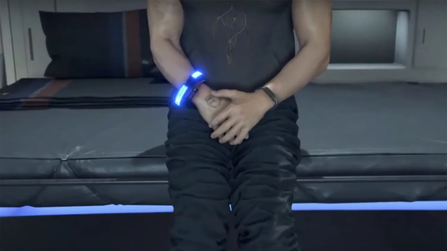 You also have the ability to interact with some objects in the room by looking at them. For example, focusing on the shower area gives you an option to clean off, and a shelf behind Sam contains collectible action figures you can examine. Sam’s BB – the baby he carries with him in a pod – is also in the room, and he can walk over and tap on the glass. However, when this happened during the demo, a disturbing scene occurred with the BB headbutting its way out of the pod. Thankfully, other ways to use the private rooms are less nightmare-like.