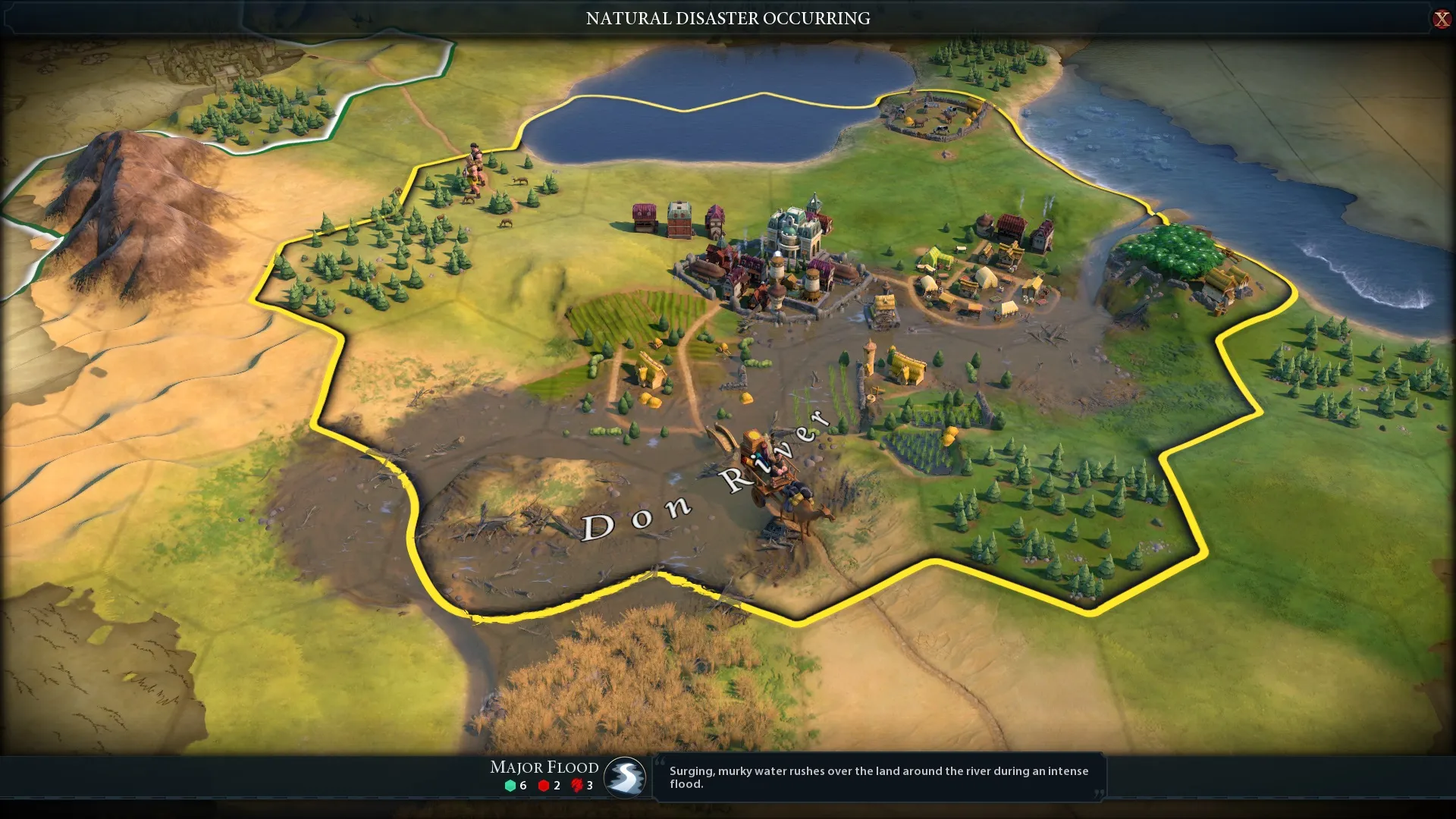 The influence of Gathering Storm’s ecosystem is evident from the start. Settlers now warn you of potential natural threats before you even found your first city, which is helpful. However, early on, I failed to listen to my people and lost a lot effort when a flooding river washed away one of my districts. Despite the danger, you have good reasons to cozy up near natural danger zones. For example, floodplains and volcanos are often extremely fertile and allow for accelerated city growth. In Gathering Storm, the surrounding environment sometimes feels like a friend, but it also acts as an enemy, like when a sandstorm tore the roof off my capital. This shifting relationship with nature continually pushed me from one risk/reward moment to the next, and the stakes only got higher as my civilization advanced and I had to balance my need for fossil fuels against the devastation of rising sea levels.