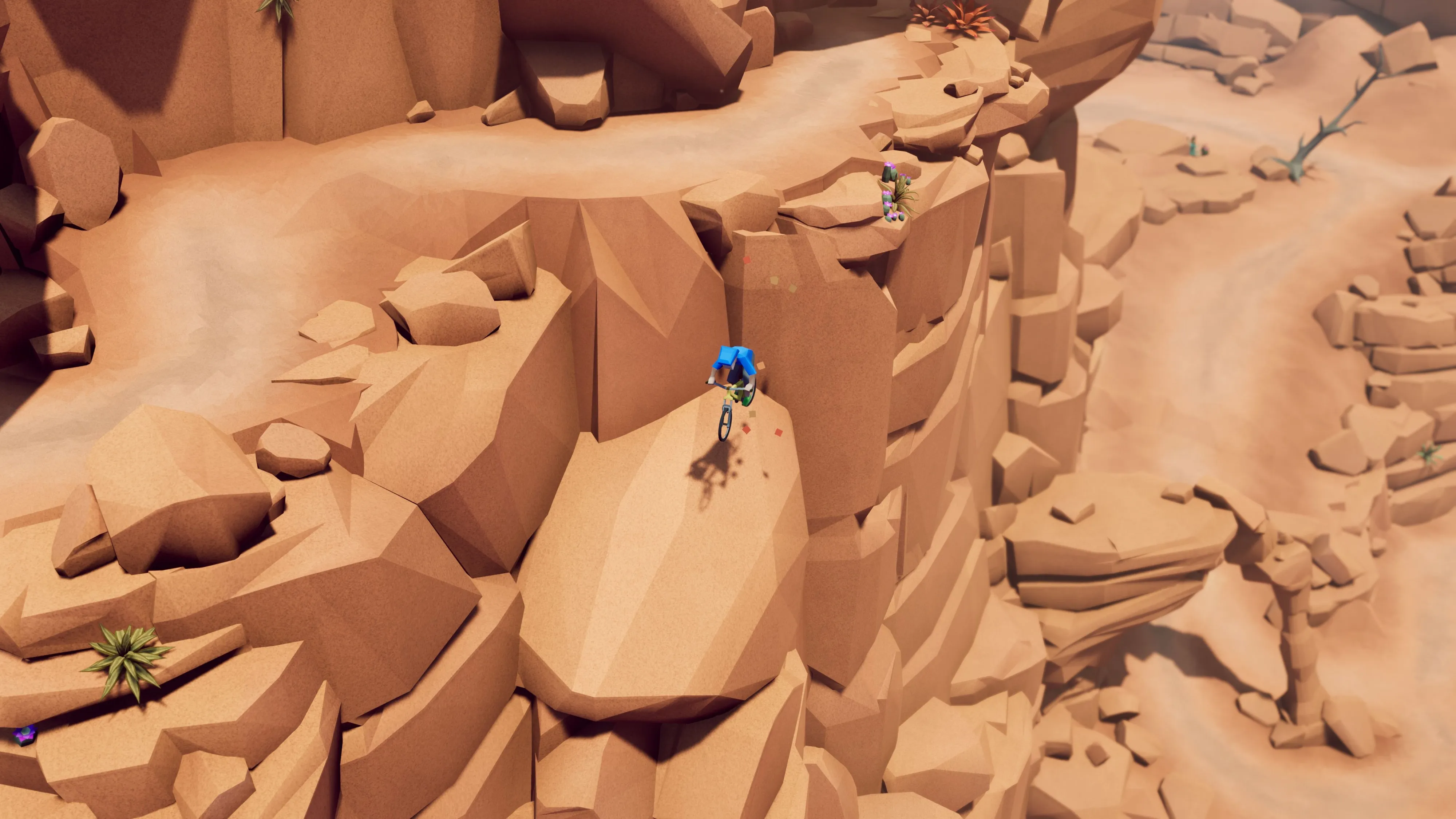 In any given run, you’re challenging yourself to beat time thresholds by any means necessary, hitting the finish line with a cleaner run, or both. The objectives are limited in scope; without more variety in targeted goals, the potential for tedium can set in over time. As it is, the main avenue to difficulty is shaving seconds off each checkpoint, transforming seemingly impossible time goals into increasingly realistic possibilities. The frustration of dozens of crashes is softened because it’s so amusing to see your poor rider go tumbling into empty space, or bang with a grunt into a stone wall. Restarts are instantaneous, so you don’t have time to dwell on your failures.