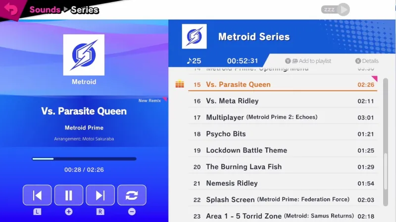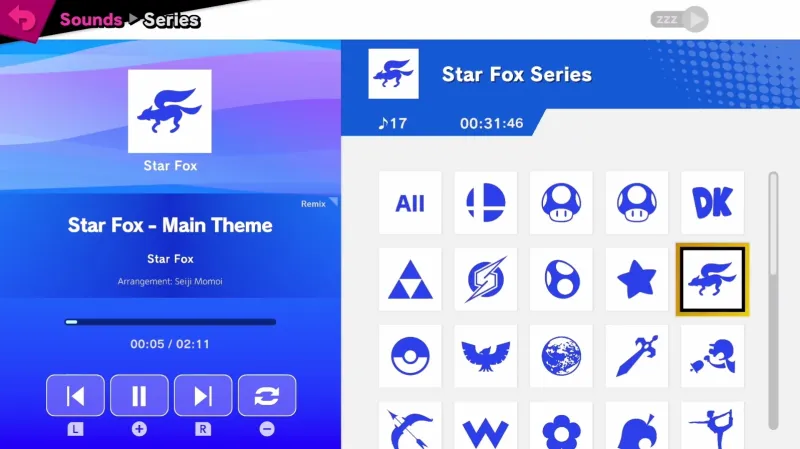You can also listen to these tracks outside of the stages by accessing the Sound Test menu. There, you find the tracks sorted by game series for ease of browsing. Players are also able to create their own playlists, which is handy for a feature Ultimate borrows from the 3DS version of Super Smash Bros.: the ability to listen to the soundtrack even if the screen is off. This means that you can plug headphones into your Switch and listen to songs in handheld mode without having to leave the screen on.
