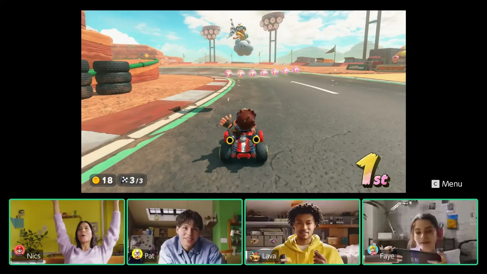 You can also show yourself on screen using the Switch 2 Camera, which launches the same day as the console. It can erase your background, placing you in front of your gameplay, or just show a direct feed of your surroundings, no game included. Some games, like Mario Party Jamboree, will also make use of the camera to include players' heads and their reactions. Unlike the game footage, the frame rate of this footage does not look dramatically reduced, though I'm sure that will depend on your internet speed.