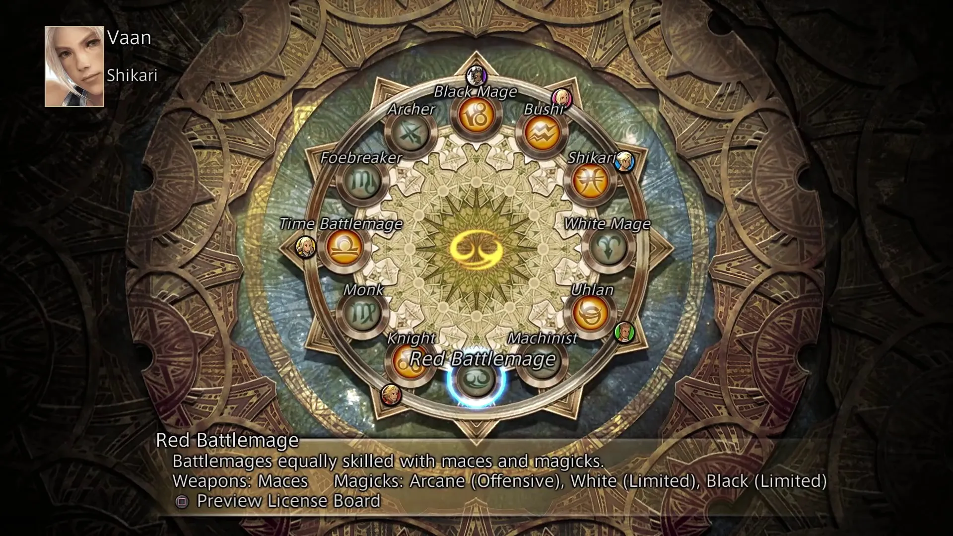 Rather than unlocking nodes on a static skill tree, progression in Final Fantasy XII is an immersive minigame. Upgrades are recorded through job licenses – spaces on a sprawling checkered board that unlock ultimates, weapon and armor sets, and stat augmentations. These licenses correlate with assigned jobs (or classes). Each job has its own board, but some may share licenses that, when purchased, overlap. For example, my Balthier is a White Mage and Machinist. Both job boards have “swiftness” licenses which lessen cooldown timers. By buying one swiftness node on the White Mage board, I can access adjacent abilities on the Machinist board.