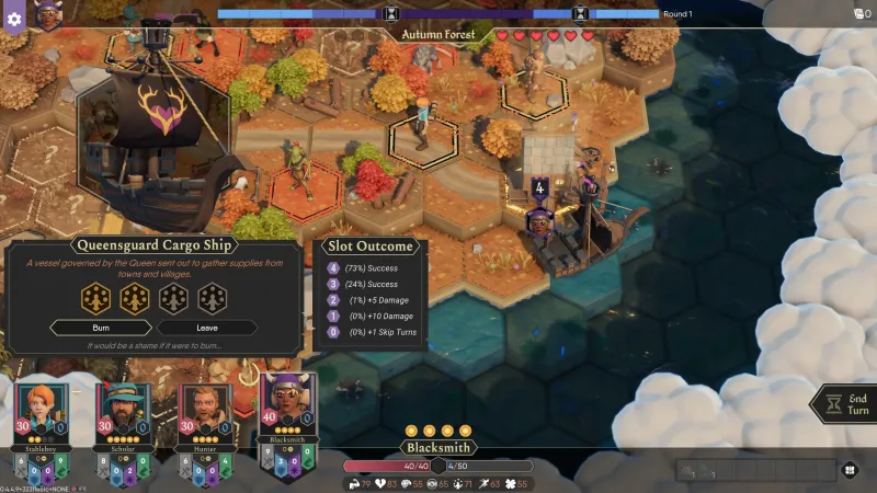 Dungeons and Dragons serves as the closest point of comparison for IronOak's digital tabletop sequel, For The King II. Serving up five distinct campaigns for players to embark on by themselves or with up to three friends locally or online, For The King II gives you many of the thrills of Dungeons and Dragons, but without the need to painstakingly plot out your campaign or befriend a creative dungeon master. After the queen is corrupted and turned evil, the people form a resistance to fight back and take her down. As such, your party isn't made of warriors or heroes, but rather villagers. You build your party from classes like Hunter, Farmer, Stablehand, and more, each with their own distinct abilities; for example, the Scholar can replenish the party's all-important Focus resource, while the Herbalist can find herbs in the wild and serve as a healer.