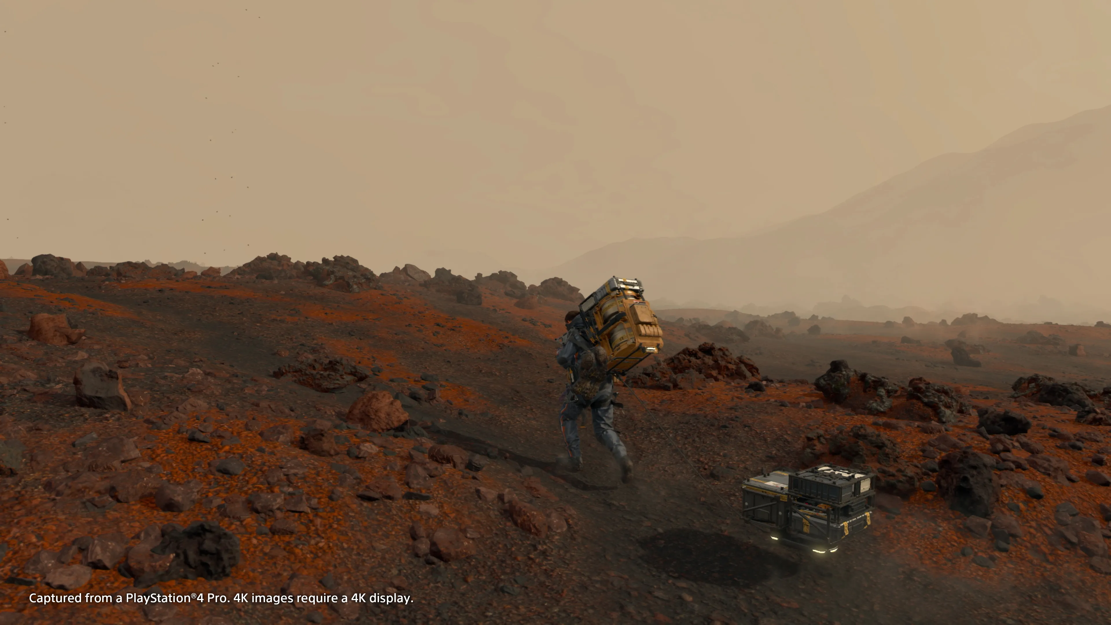 Surely this is part of your moment-to-moment gameplay. If we know Kojima, we can expect this otherwise mundane-sounding loop to surely contain some resource management gameplay or clever survival elements. At times he has an anti-gravity sled that lightens the load. We sure hope you earn this early on.
