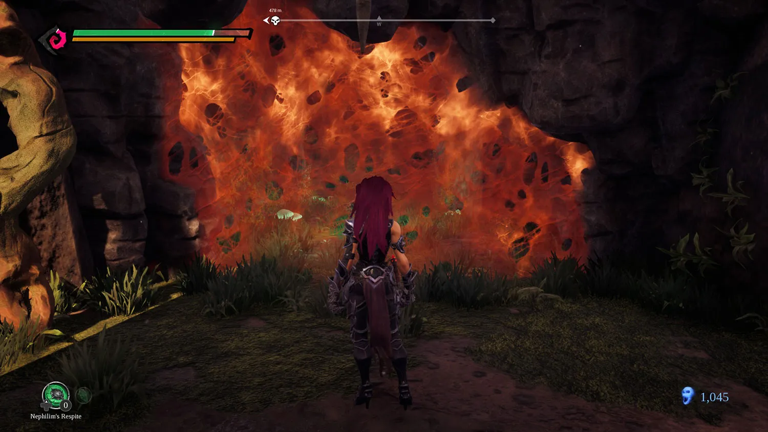 From there, Fury begins the task given to her by the council: collecting the seven deadly sins. Fury is dropped into a what appears to be a city street that has lost a long war with nature. Dilapidated cars litter the overgrown street, and it immediately recalls locations explored by War in the original Darksiders. Also like the original game, Fury is joined by a Watcher, a companion character that reminds her of her mission and occasionally offers assistance. In the first game, the Charred Council sent a Watcher (voiced by Mark Hamill in that game) with War to keep an eye on him and make sure he stuck to his mission. It’s safe to assume Fury’s Watcher is with her for the same reasons.