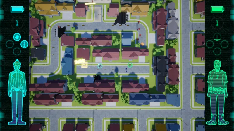 One skill was a time bomb that can be shot out to stick to enemies. By using this on the monster sheep, I could take advantage of his calmer moments to stick a bomb to him and then run away when he got more aggressive, giving me time to let the skill cooldown. Skills also become important when playing in co-op, as synergy between the two players in their skillsets mattered a great deal. Travis had a skill that called in an airstrike, but took a few seconds to fully charge and was interruptible during that time. Badman, Travis’ unwilling partner in the game world, had equipped a skill that slowed enemies to a crawl, making communication between the two important on which skills to use when.