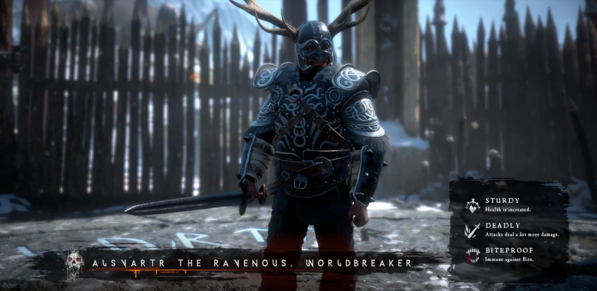 The final fight in the demo features a one-on-one battle between a named enemy that may give you flashbacks to Middle-earth: Shadow of Mordor's Nemesis system. Before the Darkborn squares off with Alsvartr the Ravenous, a stat screen appears that briefly breaks down the enemy's abilities. "Ours is authored as opposed to being procedural," Goldfarb says. "It's a much shorter game, so it's not as systemic as Mordor's system was, but they have a set of variable attributes." These named enemies will sometimes reappear as the narrative unfolds, but for the most part, these screens are there to give you some strategic suggestions before engaging in the fight.