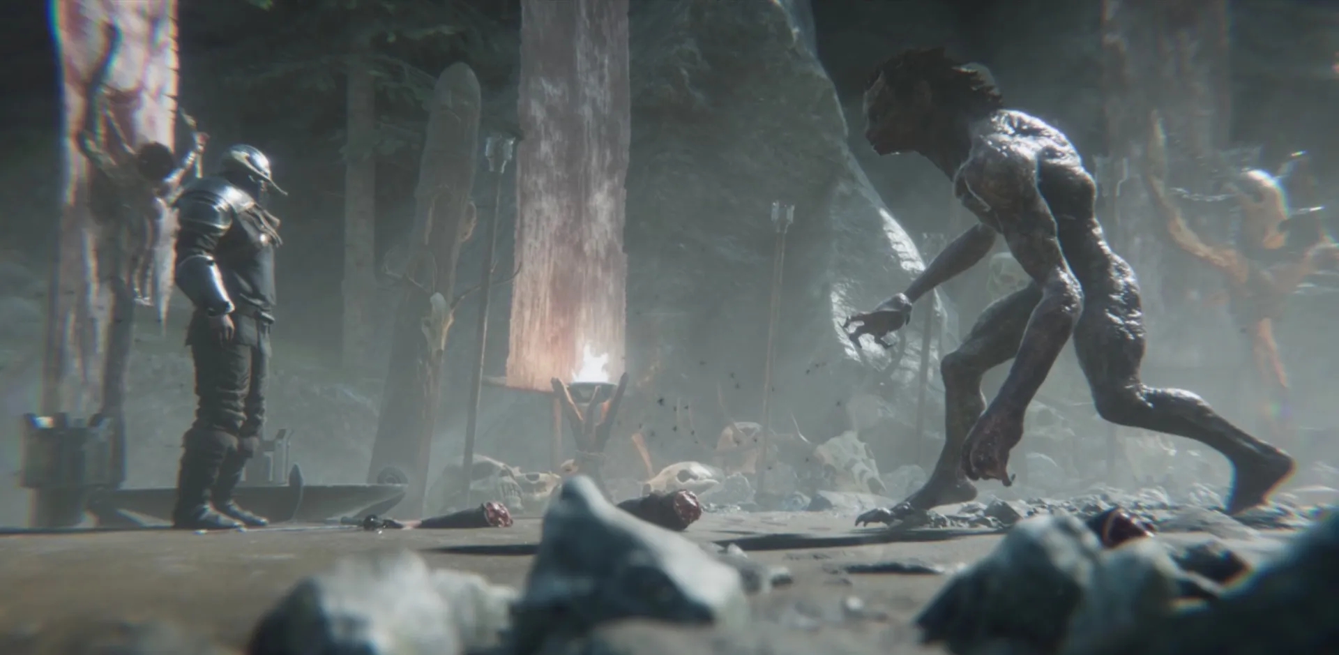 As you can see from the 16 minutes of game footage above, Darkborn drips with atmosphere, tension, and the blood of bludgeoned enemies. The art aesthetic and sound design give the game an ominous vibe, not unlike moody titles like Hellblade: Senua's Sacrifice.