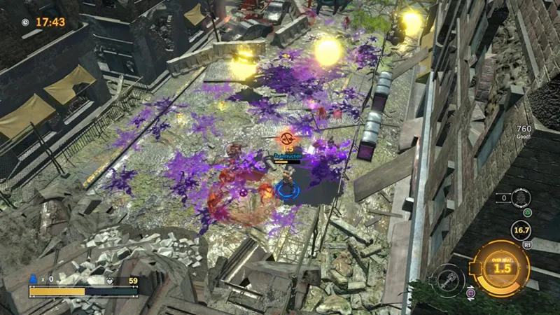 Rogue Corp positions itself as a cheesy, bombastic fragfest; one of the four playable heroes is a machine-gun-toting panda, so you can immediately tell it doesn’t take itself too seriously. That sense of freewheeling fun is completely absent from the actual gameplay, though its attempts at creating setpiece moments are laughable. In one moment, you’re chased by a giant ball. It moves so slowly that the only real tension was between weaving through parked cars and trying to figure out a better use of my time. As it turned out, the correct answer was “virtually anything at all.”