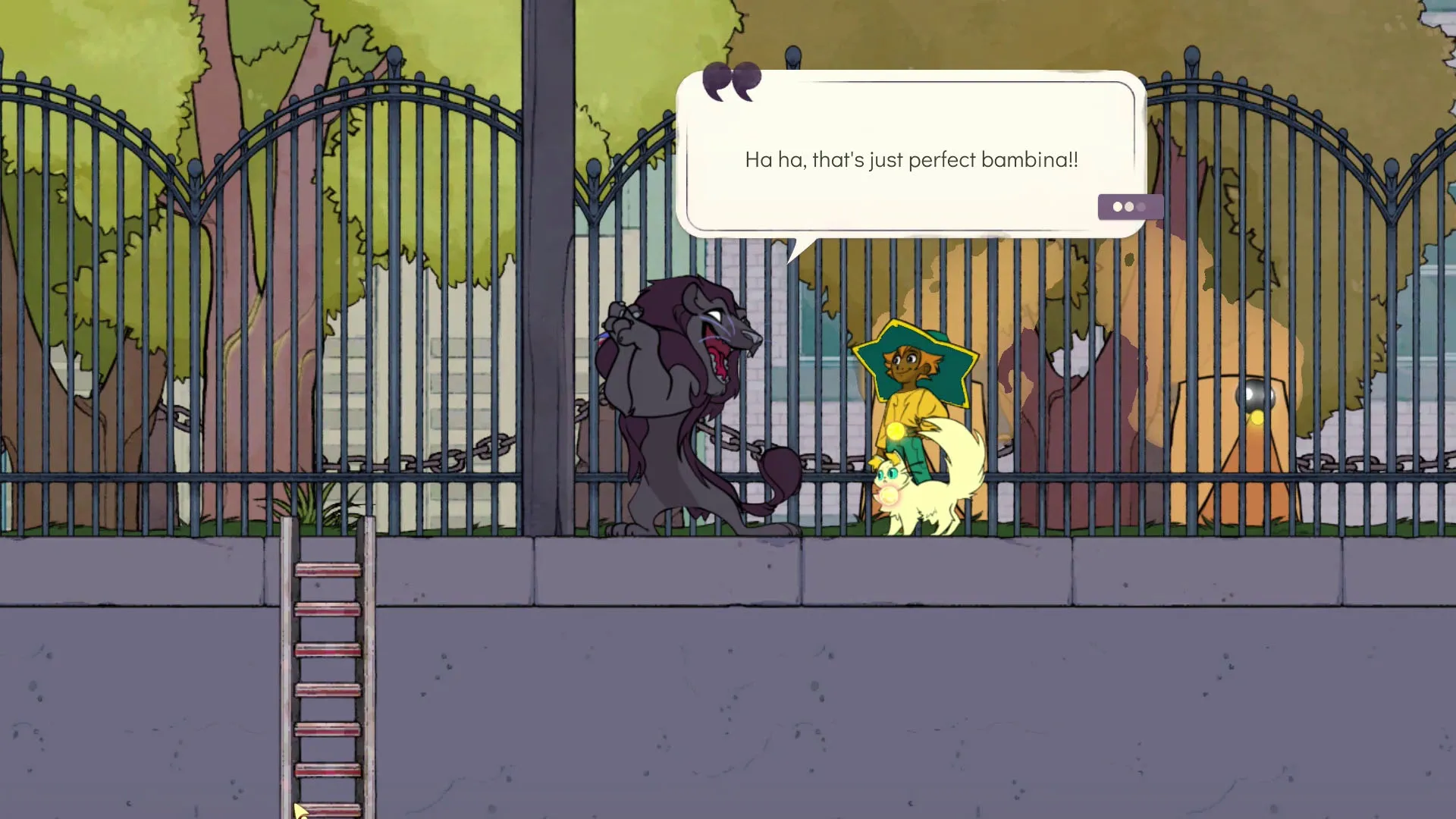 Guérin has jumped me to a point about 30 hours into the game, so I’m seeing a well-developed boat. Stella and Daffodil don’t start with all these amenities; your options are limited at first, but as your needs and capabilities grow, so does the settlement on your ship. Players progress gradually by exploring islands, gathering resources, and completing requests from spirit friends – most of whom take forms drawn from the natural world. Some of my passengers include anthropomorphic versions of a deer, a mushroom, and a lion. They each have different needs, asking Stella to do things that ultimately help them reflect on their lives and finish their journeys. I didn’t see a wide variety of these quests from my time playing, but I did go ashore briefly to complete one request that involves picking some flowers in a public park.