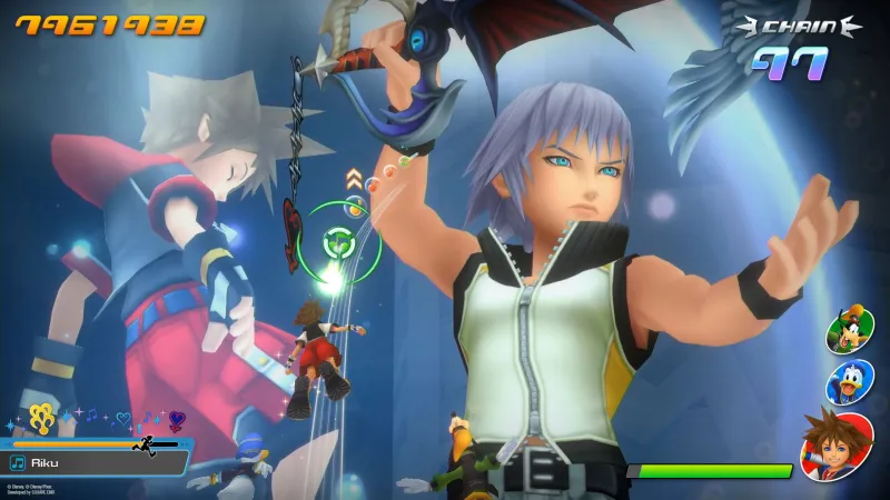 From there, we started to think, “Okay, so how do we incorporate different elements?” And Nomura-san provided feedback and a lot of the inspiration that went into the basic idea. We took that as well as some of the technical elements and the mechanics that were already existing in the Theatrhythm titles, and then thought about what kind of music and what kind of scheme of the notes that we want for players to experience. We [wanted to] incorporate those fun elements of play and make sure that we are leveraging the game mechanics of the original game, as well as bringing in Kingdom Hearts’ stylish action and incorporating the rich story behind it, especially the world settings that we've established in our series titles. We asked, “How do we leverage and keep the integrity of that?” That was our foundation for our approach.