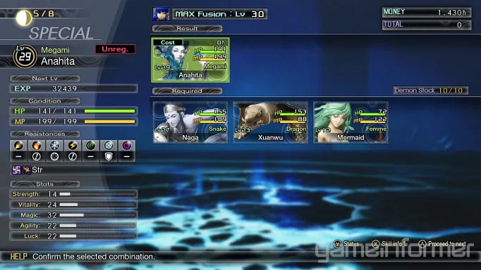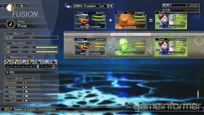 Let's dive right into the gameplay. Just like in previous games, you turn enemy demons into allies. Every demon has its own quirks and personality types, but Atlus says to also expect some new behavioral patterns and moon phases, particularly new and full moons, to affect their temperaments. The screenshots below also showcase the different types of demon fusion: special, reverse, elemental, and create your own demon. Visiting Sophia in the World of Shadows allows you to create more powerful demons, whether you're fusing 2-4 demons together for special fusions, or using elemental fusions to upgrade or downgrade to another demon within the same family.