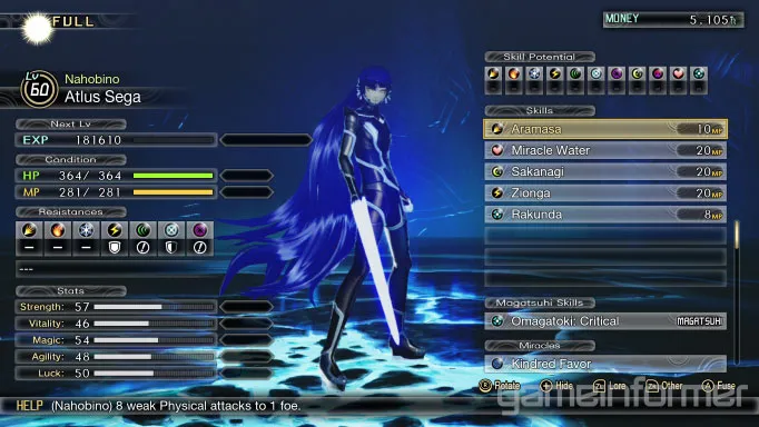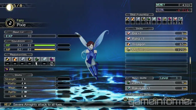 In addition, you have some extra ways to add skills and improve the stats of your party. Essences – spiritual cores imbued with the powers of demons – can be found as you explore the parallel world of Da'at and interact with the demons there. Fusing these with the protagonist lets you customize his skills and affinities to your liking, but you can also use them on your demon party members to adjust their powers.