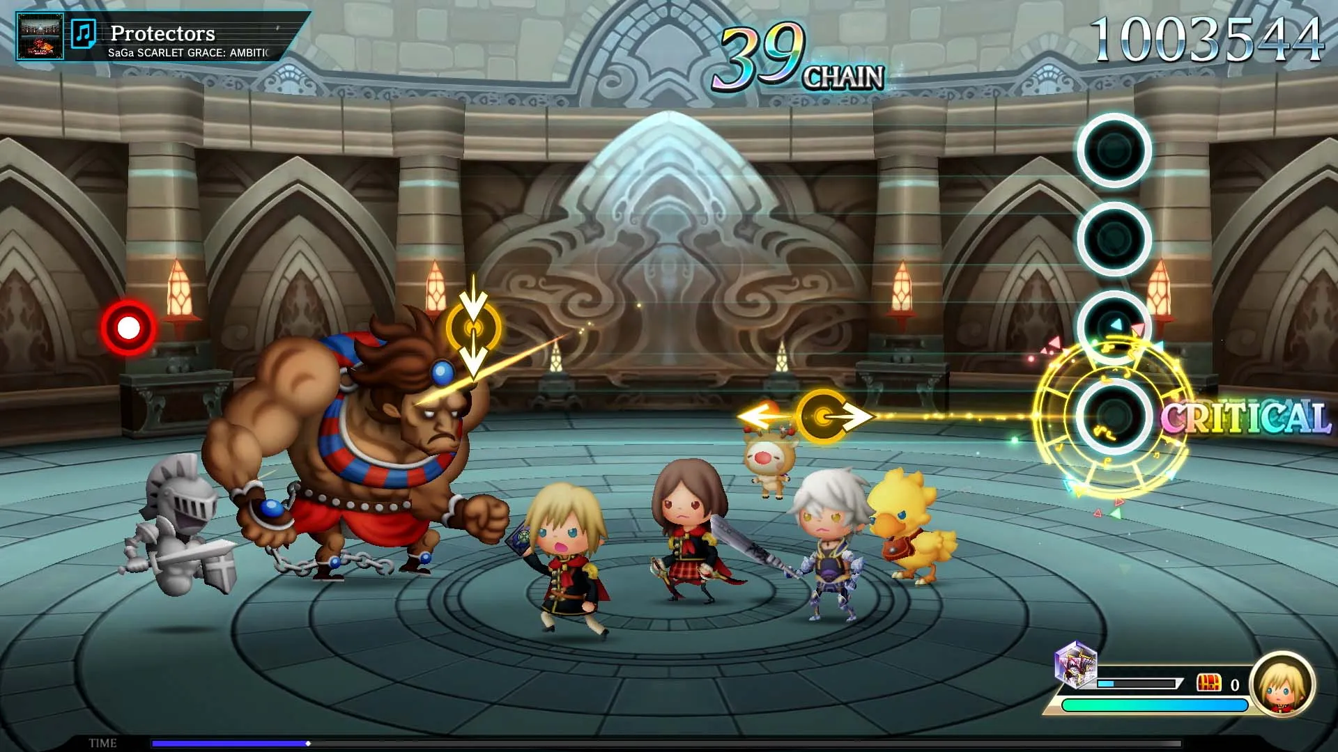 In the nearly 10 years between the last game and Final Bar Line, not much has changed. The sequel retains the cute, chibi art style of the first, the same types of stage formats, and many of the same songs, which is great; it worked in 2012 (and 2014) and it works here, too. One big difference, though, is the way you play Final Bar Line. Theatrhythm’s horizontal music scroll that dictated when to hit beats was strange, especially given how popular vertical music scrolls were thanks to the likes of Guitar Hero and Rock Band. But since the games utilized the 3DS’ sturdy touch screen and stylus, the horizontal scroll worked well, giving players a nice view of the battles and adventures taking place to the tune of your beats. That horizontal scroll returns in Final Bar Line, though it was more awkward, at first, without the same touch screen mechanics to get used to.