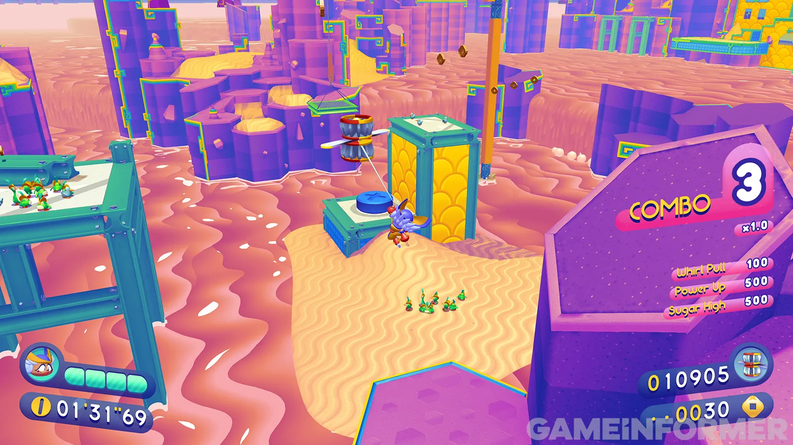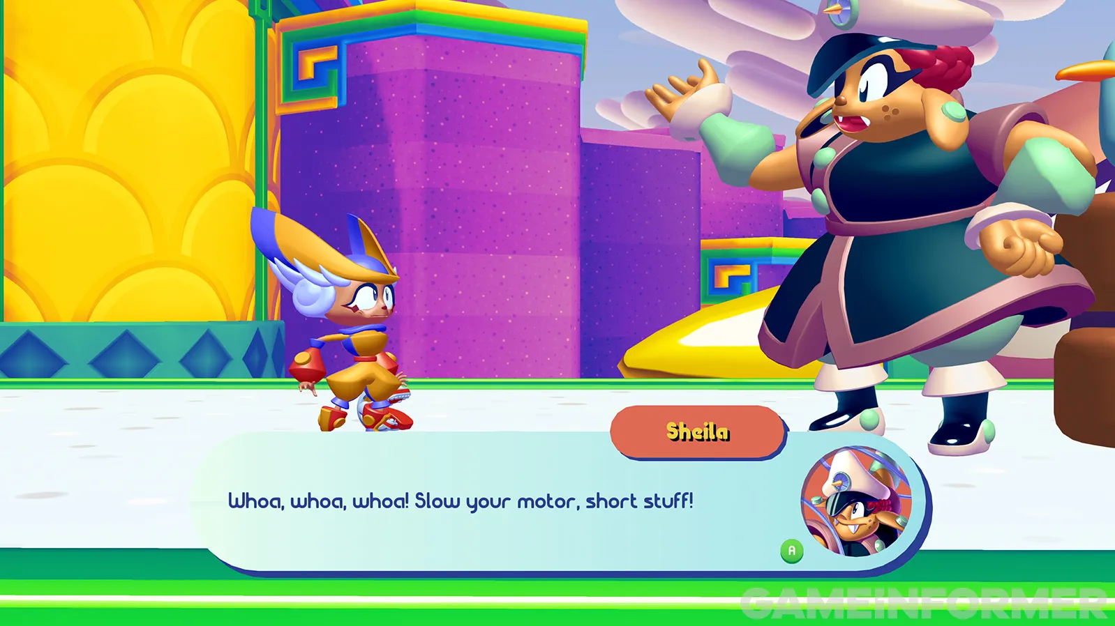 Although it takes me some time – something I welcome because it’s rare to experience a new moveset that challenges my preconceptions of a genre – I finish my Penny’s Big Breakaway play time with the realization that it’s not a 3D platformer in the vein of something Nintendo might create, another challenged preconception. On the one hand, it’s a Tony Hawk’s Pro Skater-inspired platformer with an emphasis on momentum that will appeal heavily to speedrunners and time trial fans, with a constant score and Devil May Cry-style combo tracker on the right side of the screen, too. On the other, it’s a team’s love letter to the weird and sometimes broken platformers of the 3D genre’s early days. Together as a complete package, it rules.