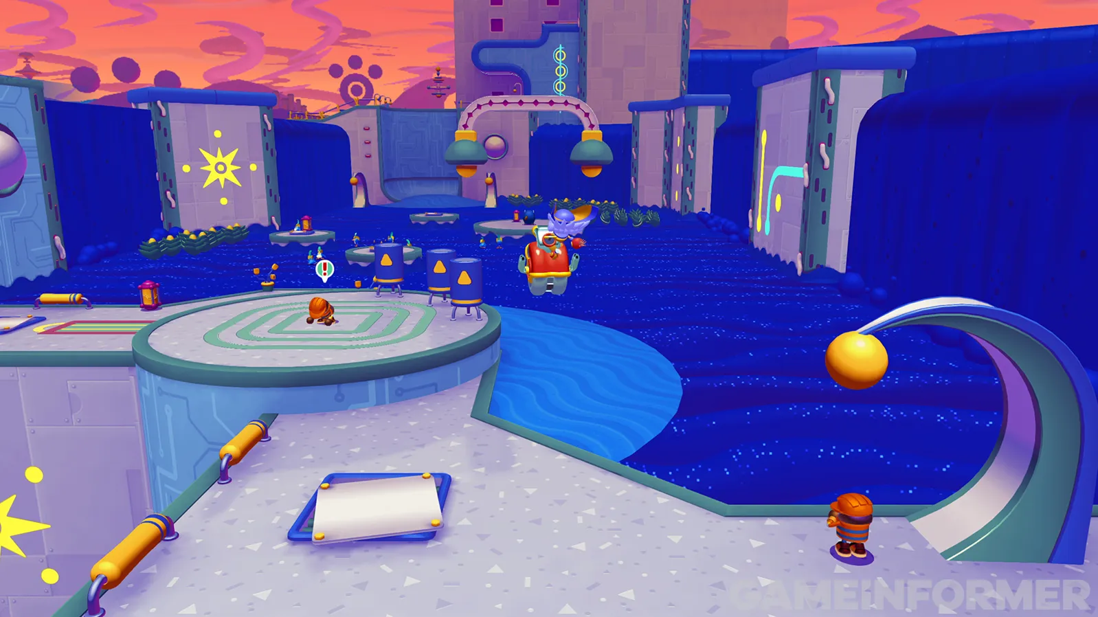 “The rules [of 3D platformers] at that stage weren’t really established that well,” Whitehead says. “I remember growing up playing a lot of PlayStation games where they were maybe a bit rough around the edges but trying to grapple platforming mechanics in 3D, and I felt really inspired by that era. I experienced that as a kid, but I wanted to experience that as a developer.”
